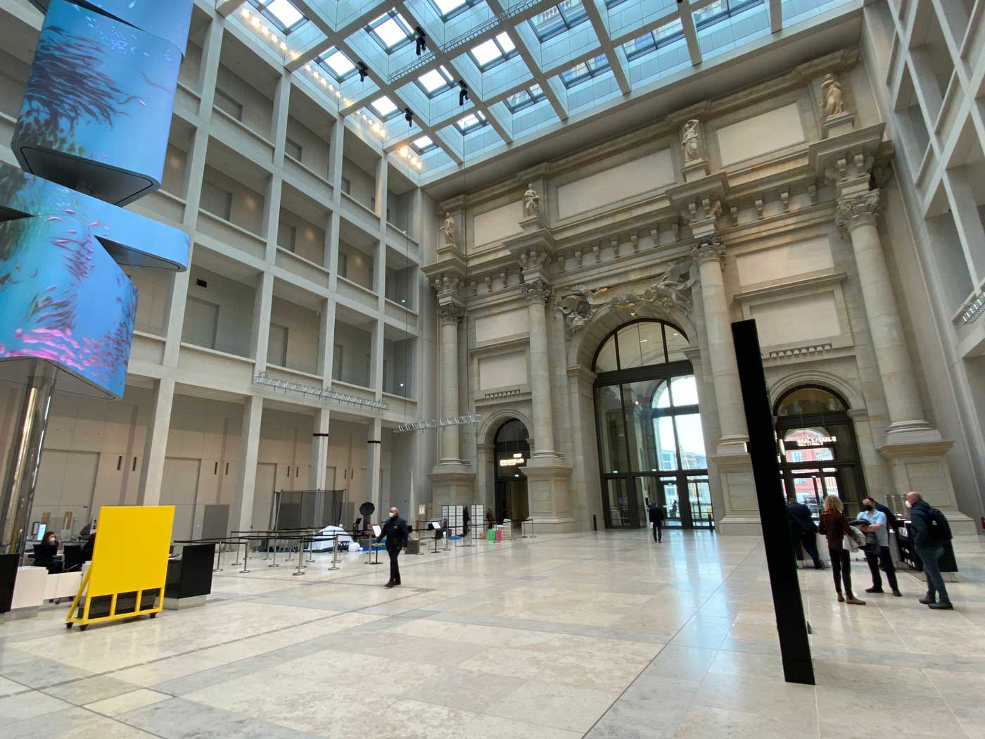 Het Humboldt Forum bestaat uit een tweetal grote gebouwen met daartussen in een passage. De onderstaande foto is genomen in deze passage. Via een tweetal portalen kun je deze passage binnenlopen en weer verlaten.