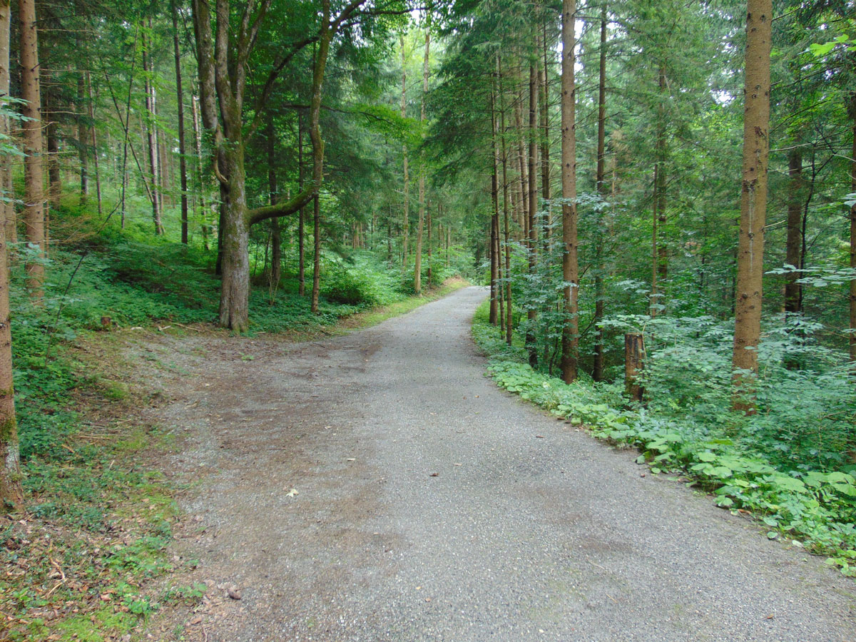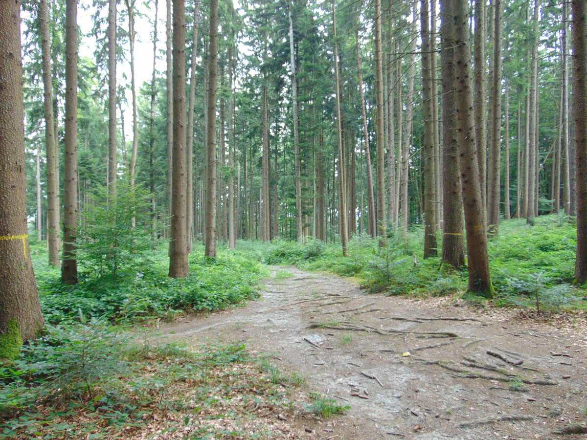 De wandelroute gaat vervolgens verder het bos in. Dit gedeelte van de route loopt vlak langs de grens met Oostenrijk.