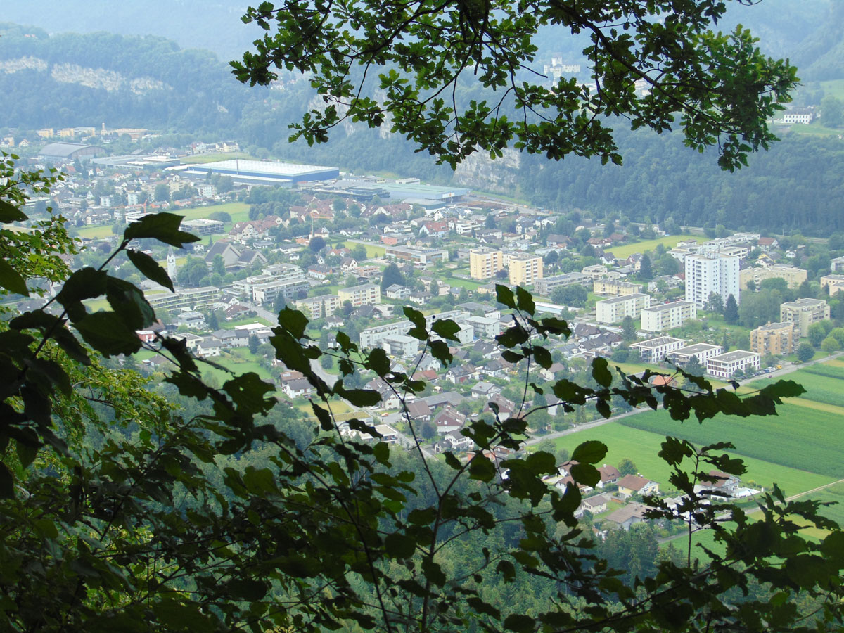 Op een aantal plaatsen kun je kijken naar het dal waarin onder andere de Oostenrijkse stad Feldkirch ligt. Dit dal was oorspronkelijk een meer dat ontstaan was ten gevolge van het smelten van de laatste gletsjer uit de ijstijd. Ongeveer 200 jaar geleden is het dal drooggelegd om het te kunnen gaan bebouwen.