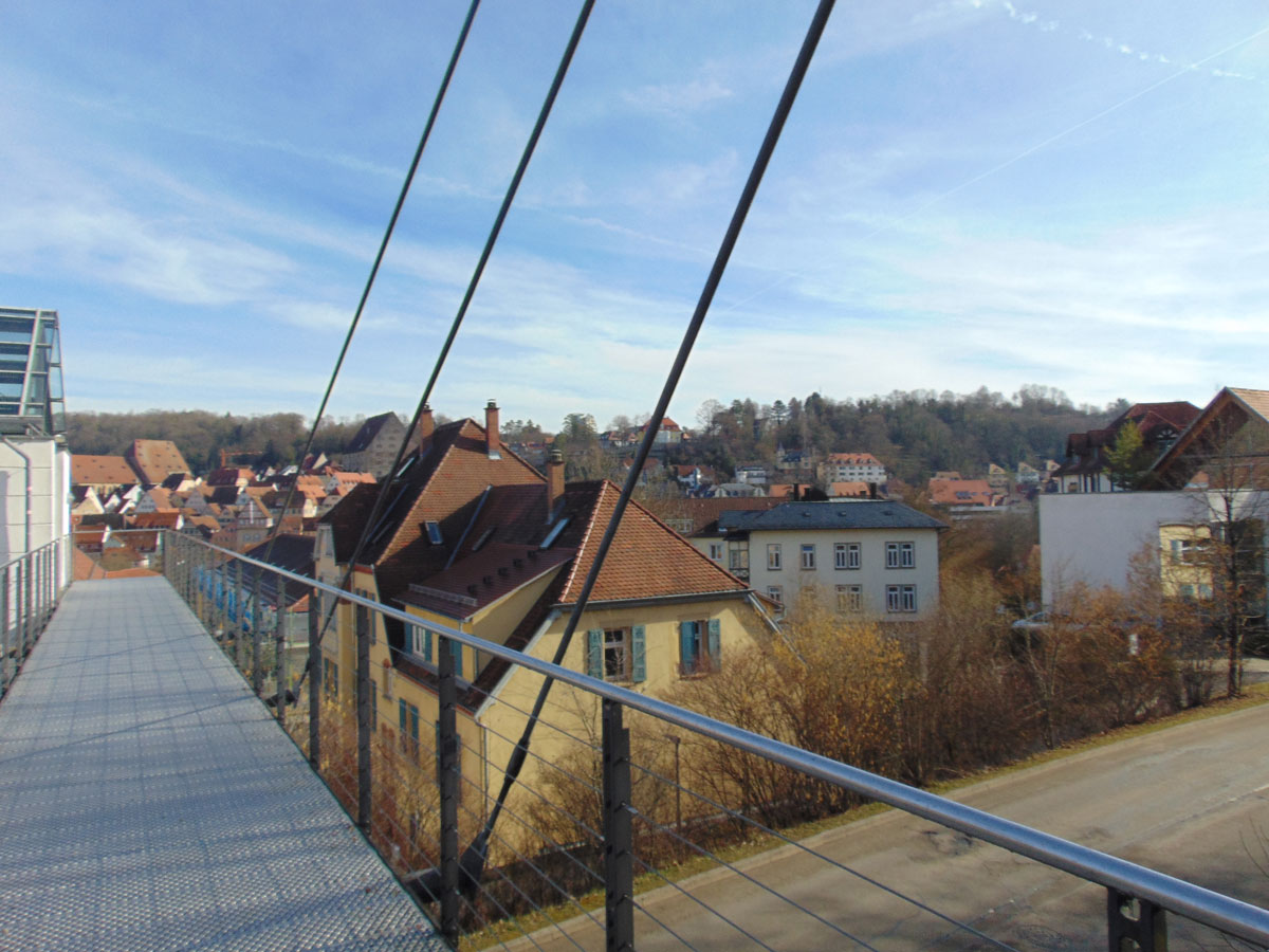 Doorlopend langs de rivier de Kocher en deze uiteindelijk overstekend kom je uit bij het nieuwe busstation van de stad. Vanuit deze plek kun je dan doorlopen naar het oude gedeelte van de binnenstad.