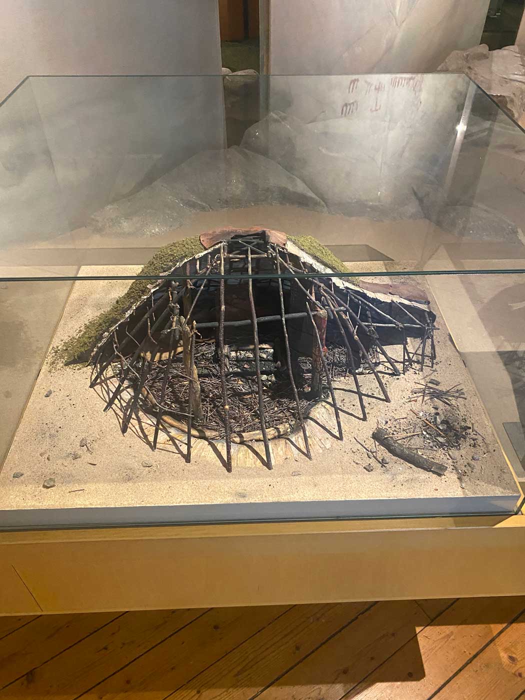 Zo’n 8000 jaar geleden leefden mensen onder andere in winterhutten. Zoals op de onderstaande foto te zien is, is door middel van takken een bolvormige constructie gemaakt. Een deel hiervan is afgedekt met zand om zo te zorgen voor een overdekte ruimte waar de mensen in de winter warm konden blijven.