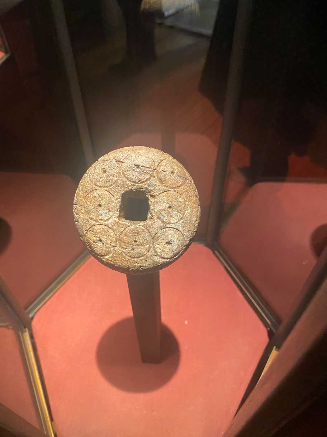 Een voorwerp uit de Viking tijd is deze runensteen. Op deze steen zijn een aantal symbolen gekrast om het voorwerp magische krachten te geven. De runentekens “h k” betekenen “Christus help”.