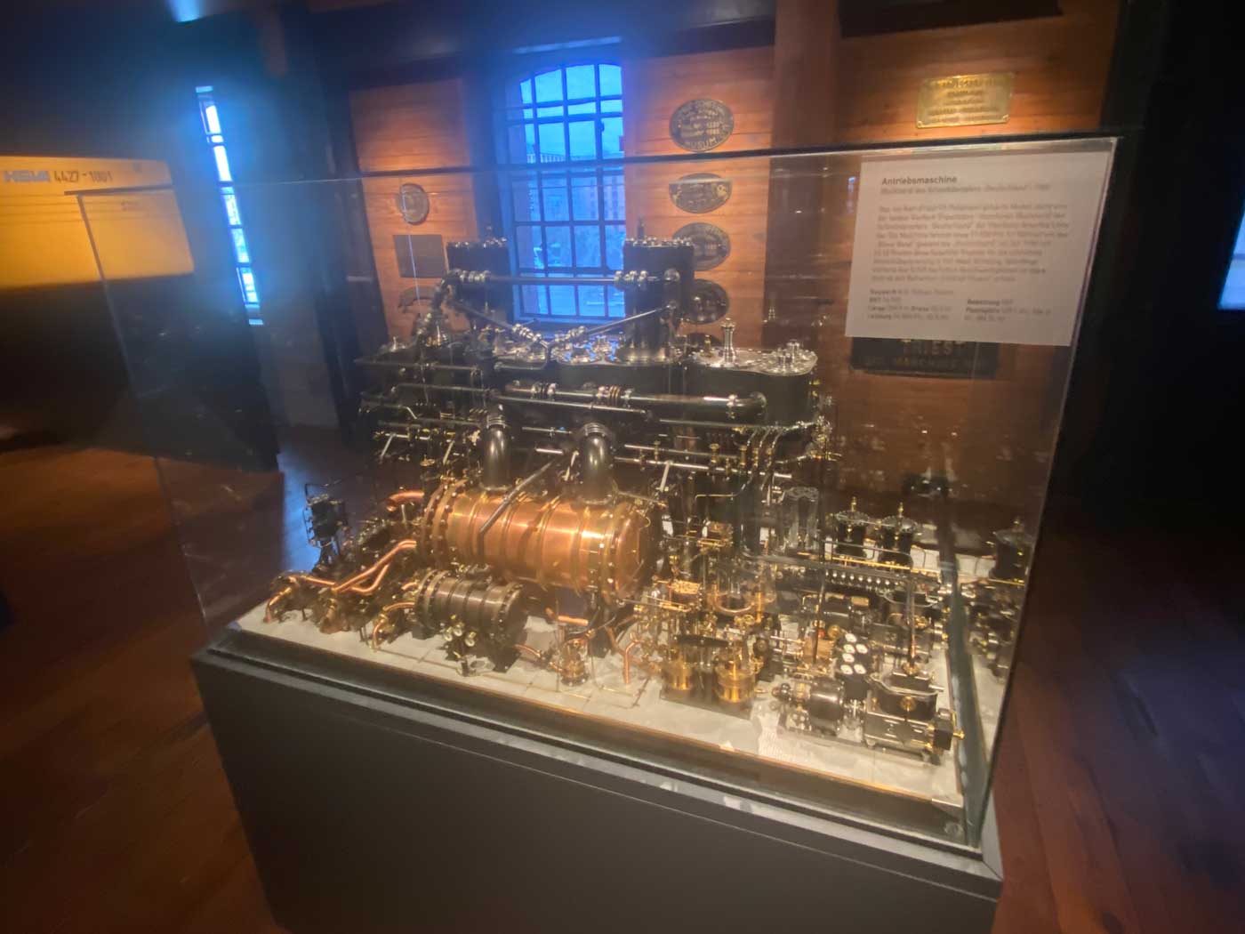Het museum laat niet alleen modellen van schepen zien maar ook een model van een aandrijfmachine. In dit geval van het schip “Deutschland” dat voer op de Hamburg Amerika lijn rond het jaar 1900. In dat jaar heeft het schip een prijs gewonnen voor het zo snel mogelijk oversteken van de Atlantische Oceaan van oost naar west.