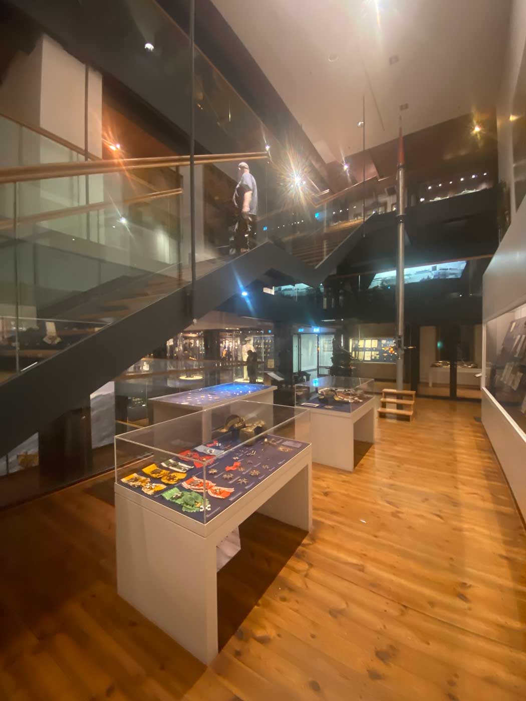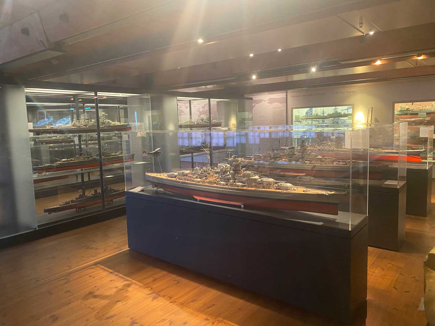 Hier blijkt maar weer eens de enorme diversiteit van de collectie scheepsmodellen want op de vijfde verdieping is een grote hoeveelheid modellen van militaire schepen te zien.