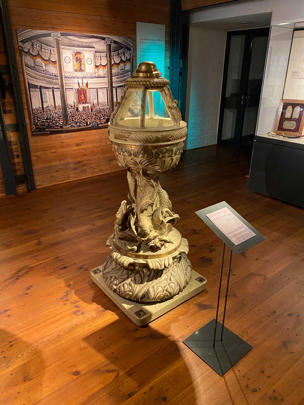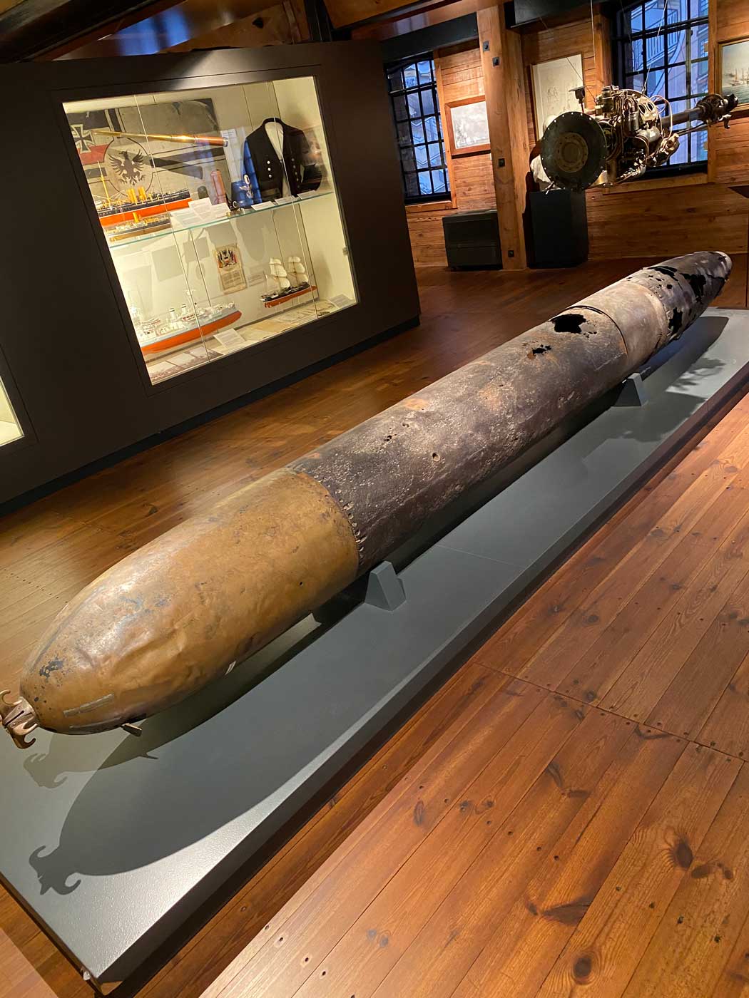 In het museum staat een houten kompasstandaard die zich bevond op het scholingsfregat “Deutschland” in het midden van de 19de eeuw. Dit schip is gebouwd in 1818 en heeft tot 1848 gefunctioneerd. Daarna is het nog een jaar of tien gebruikt voor onderwijsdoeleinden.