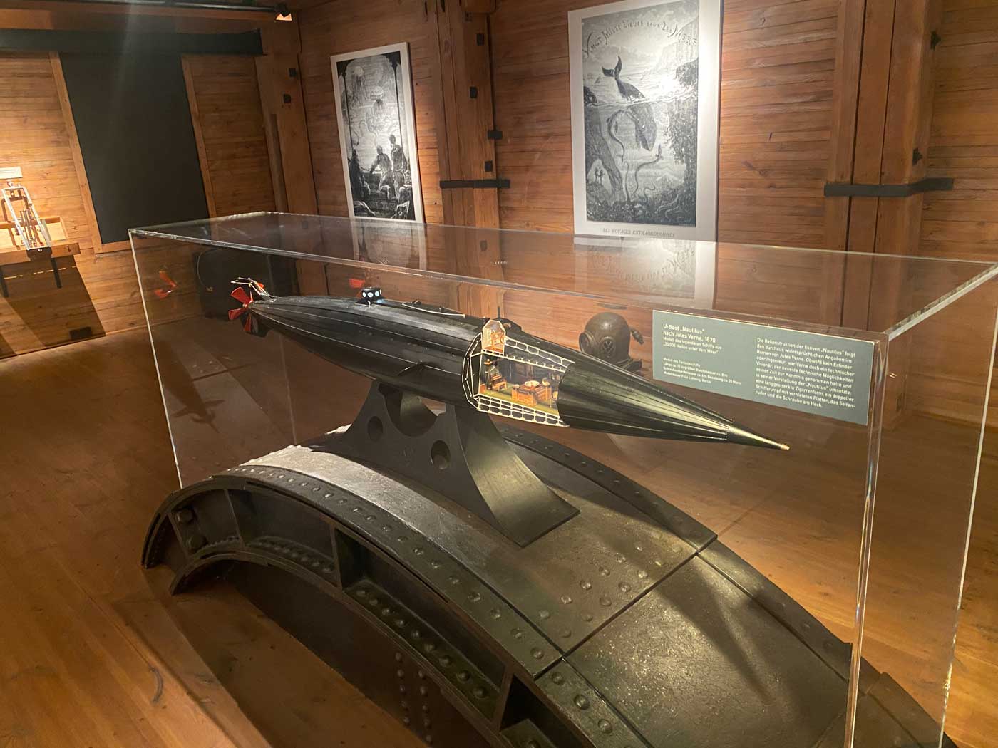 Een model van een niet bestaand schip staat op de volgende foto. Het is een reconstructie van de fictieve duikboot “Nautilus” uit het boek “20.000 mijl onder de zee” van Jules Verne. Verne was geen uitvinder of ingenieur maar verwerkte wel de nieuwste technische mogelijkheden in zijn boeken.