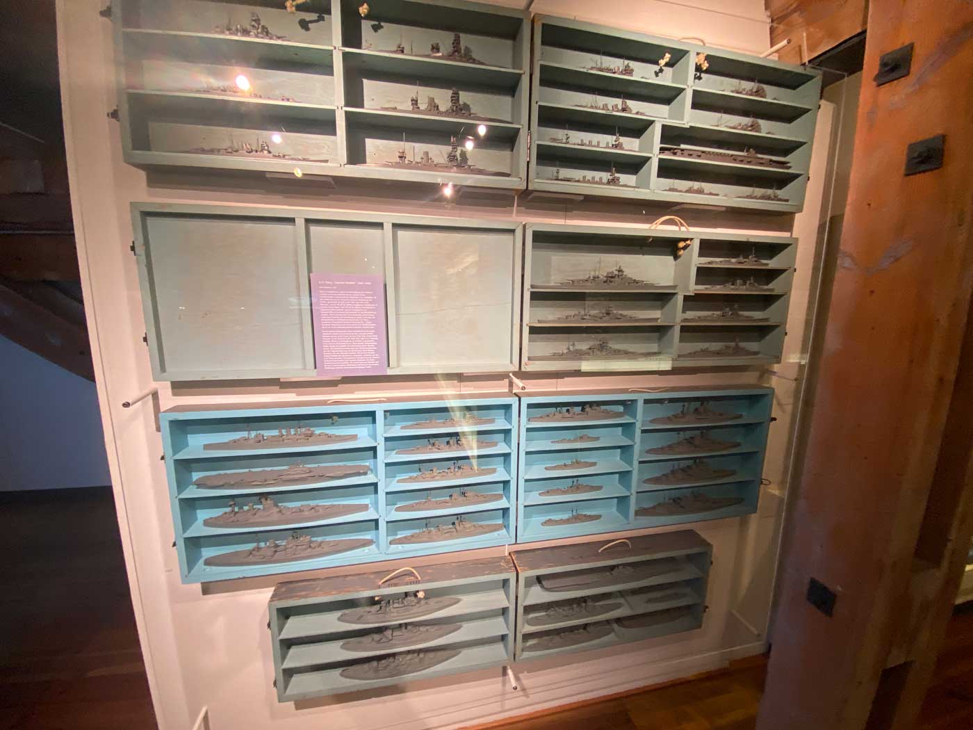 Weer een ander soort model is in de Tweede Wereldoorlog door de Amerikaanse marine gebruikt voor scholingsdoeleinden. Er is een selectie van modellen van Japanse, Duitse, Britse en Amerikaanse schepen te zien op een schaal van 1:500.