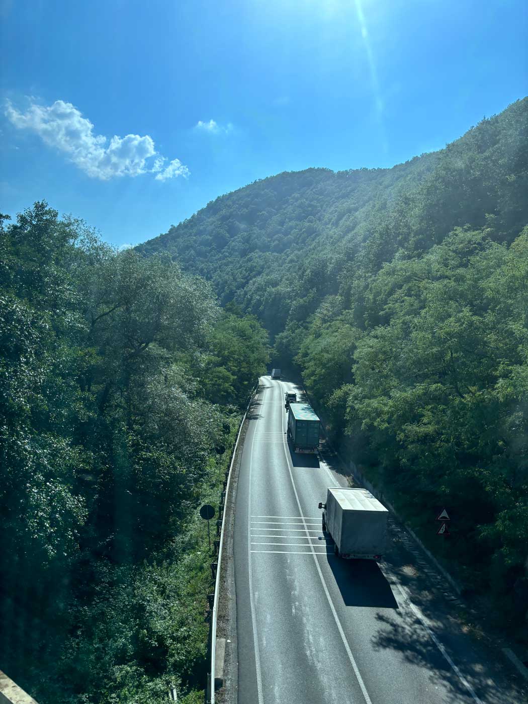 Op dit deel van de reis heb ik niet van alle stations goede foto’s kunnen nemen. De trein zat nog steeds behoorlijk vol, dus dan kun je niet even door de wagon lopen om op een andere plek een foto te nemen. Ik had wel gezorgd voor een gereserveerde stoel aan de raamkant, maar dan mis je in een aantal gevallen dus dingen die aan de andere kant te zien zijn. Na een stop in Baile Herculane reed de trein verder naar Orsova. De onderstaande foto is tussen beide plaatsen gemaakt. Dit vond ik zelf het mooiste deel van de treinreis. Een heuvel- en bergachtige omgeving met mooie uitzichten.