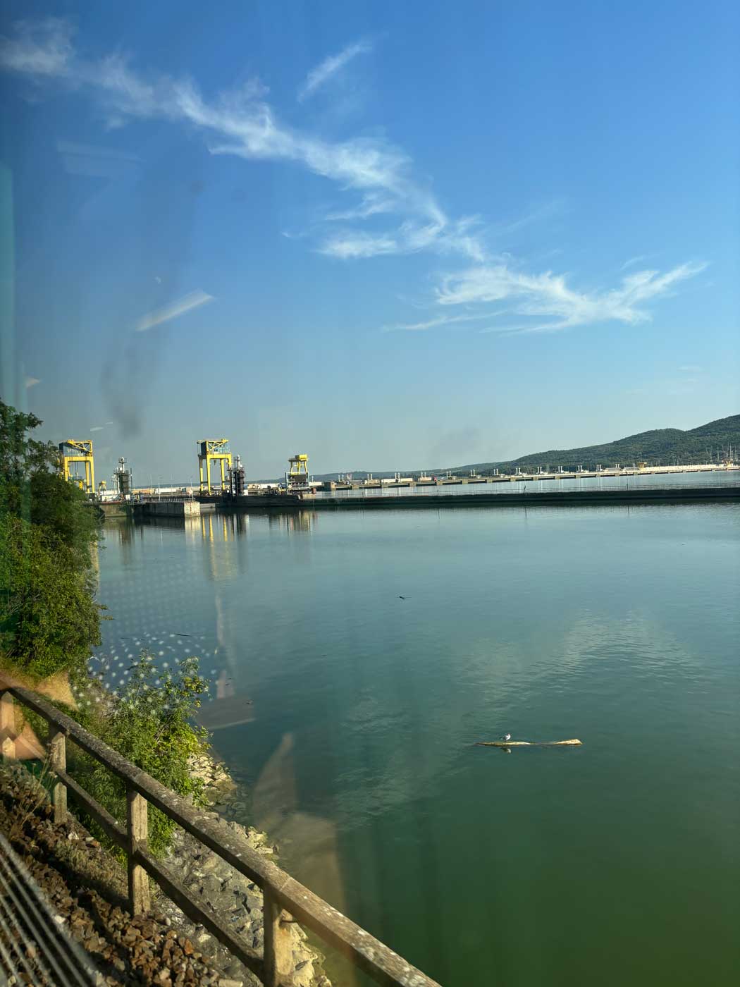 Tot het volgende station (Drobeta Turnu Severin) rijdt de trein langs de rivier de Donau. Aan de overkant van de rivier ligt Servië.