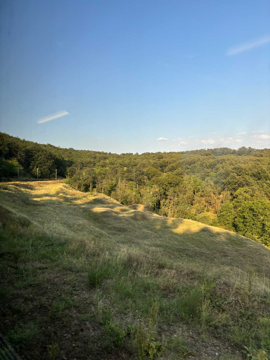 Het landschap is ook hier nog vrij vlak. Op verschillende plekken leek het alsof er langs het spoor gewerkt werd. Er lagen spoorrails en dwarsbalken klaar. Hier en daar waren ook mensen aan het werk. Op verschillende momenten stond de trein gewoon stil om een aantal minuten te wachten voordat verder gereden kon worden. Intussen was het zowel buiten als binnen bloedheet geworden. In Nederland zou een trein dan allang stilgezet zijn, maar hier wordt gewoon doorgereden.