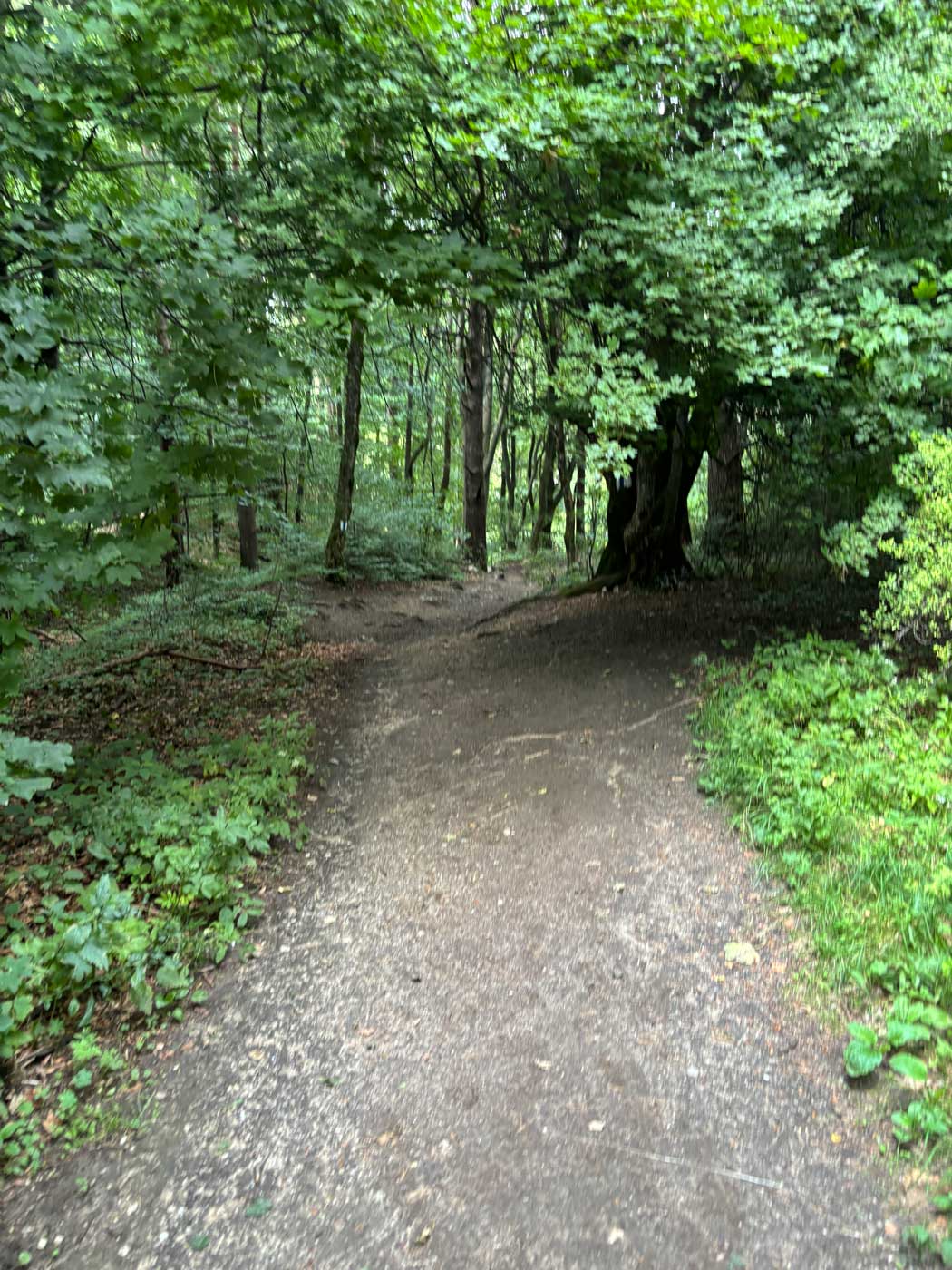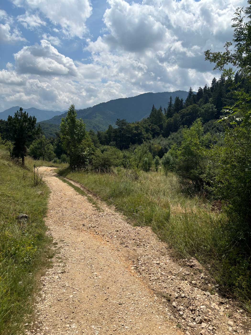 Na nog een stuk door het open terrein gelopen te hebben, ging de wandeling via een vrij steil pad dat door de bossen liep verder om na een half uurtje weer uit te komen in de oude stad van Brasov.