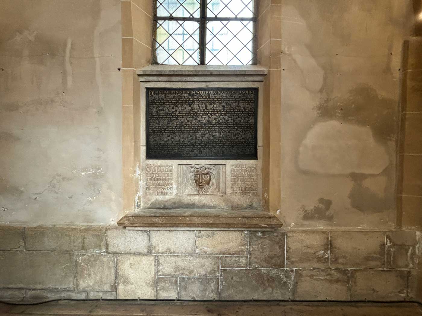 De Duitse geschiedenis van de kerk komt onder andere terug in een herdenkingssteen in het Duits ter nagedachtenis aan de soldaten die gestorven zijn in de Eerste Wereldoorlog.
