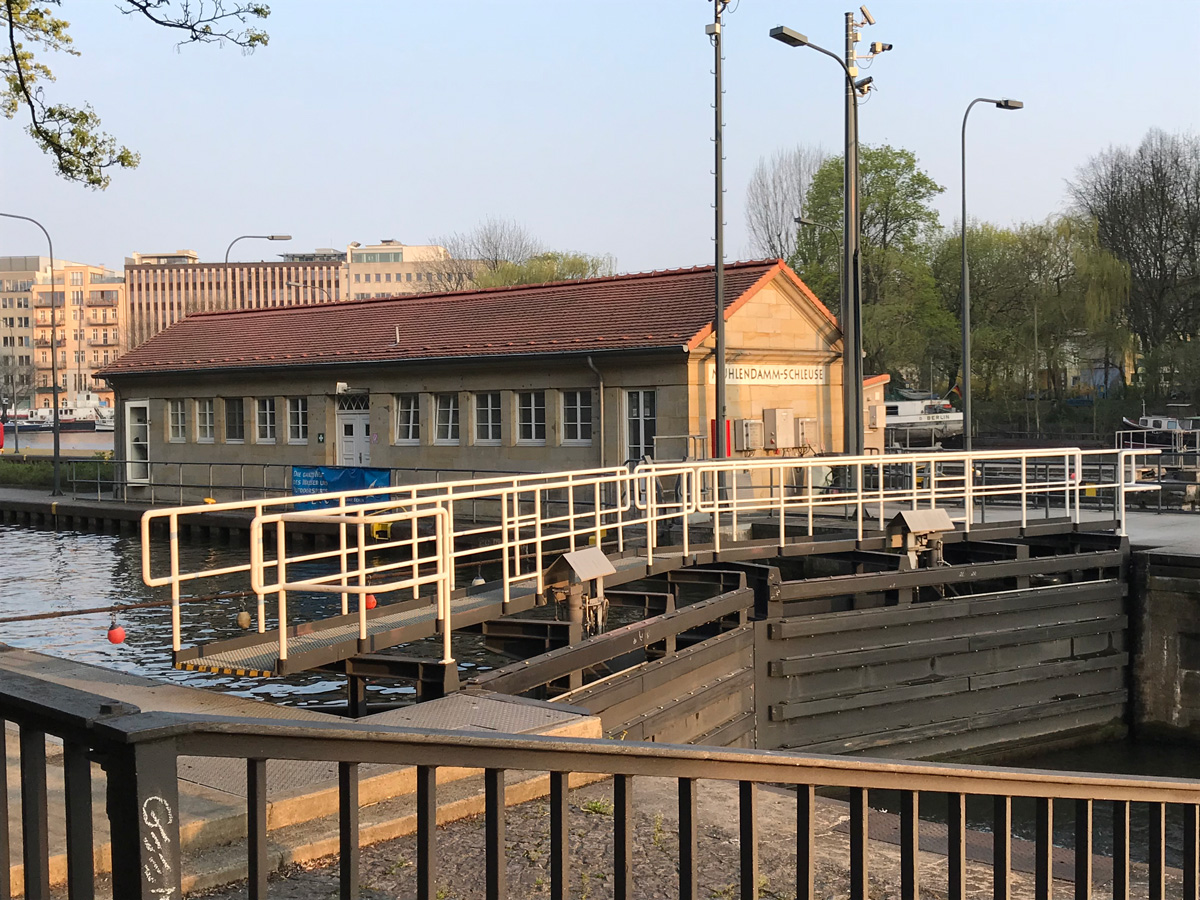 Als je vanaf het centraal station richting het Oosten loopt, kom je uiteindelijk uit bij het oostelijke station van Berlijn. Onderweg kom je dan een sluis bij de Mühlendamm tegen.