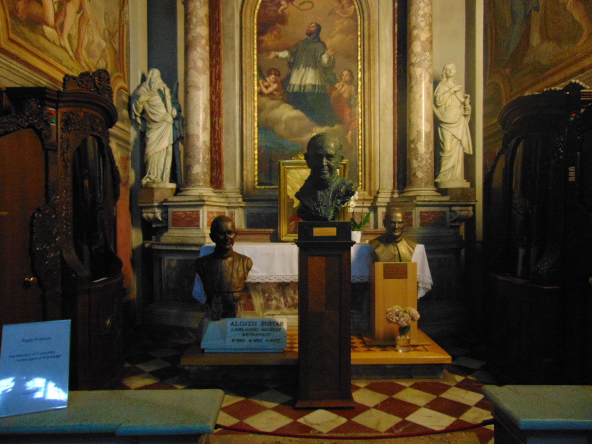 In de kathedraal was het behoorlijk donker en aangezien fotograferen met flits niet was toegestaan, zijn de foto’s helaas niet erg duidelijk. In de kathedraal bevindt zich een kleine verzameling van busts van de huidige paus Franciscus.