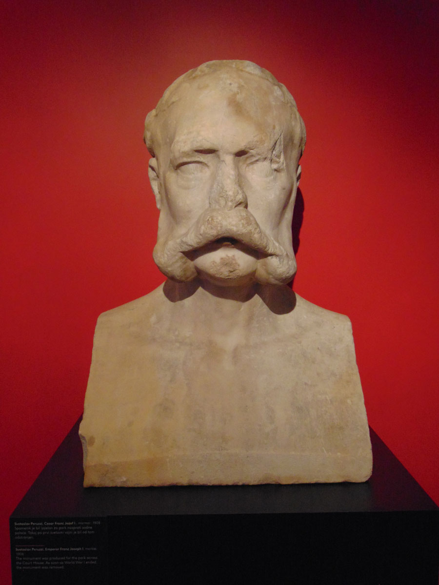 De foto hieronder laat een beeld zien van keizer Frans Jozef I. Dit beeld is ontworpen voor het parkt tegenover het gerechtsgebouw. Na de Eerste Wereldoorlog en het verdwijnen van de Habsburgers is het beeld alweer van deze plaats verwijderd.