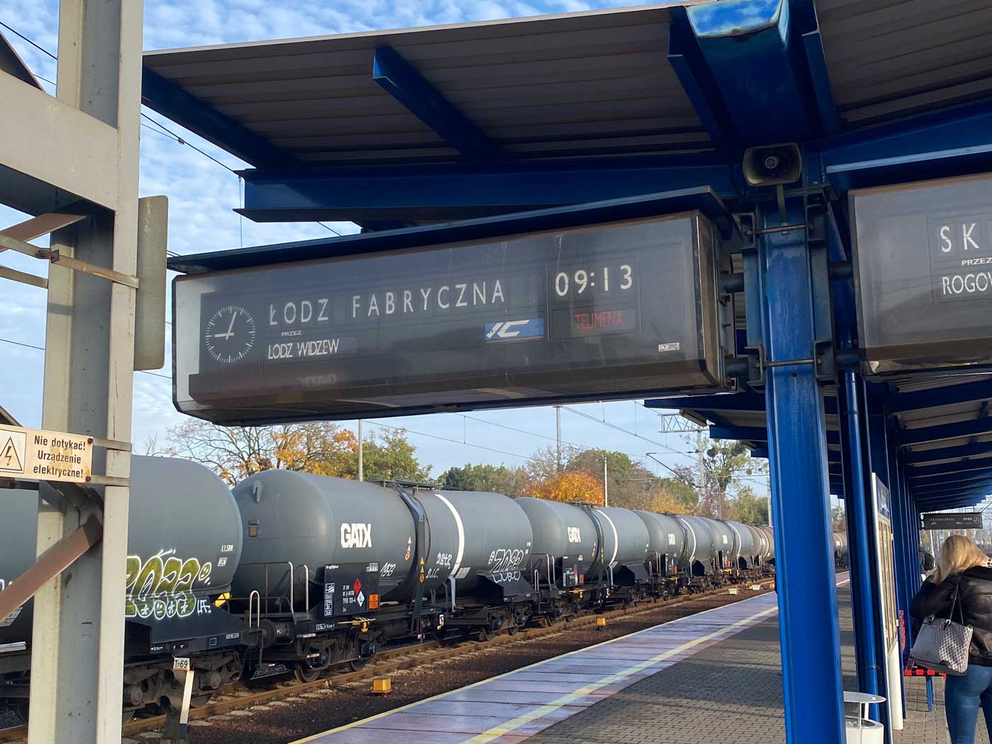 Er rijden tussen Warschau en het station Lodz Fabrycna geen rechtstreekse treinen. Nadat ik rond tien voor acht vertrokken was vanuit Warschau was na ongeveer een uur een overstap nodig in Koluszki. Dit is een kleine plaats in Polen met rond de 14.000 inwoners.