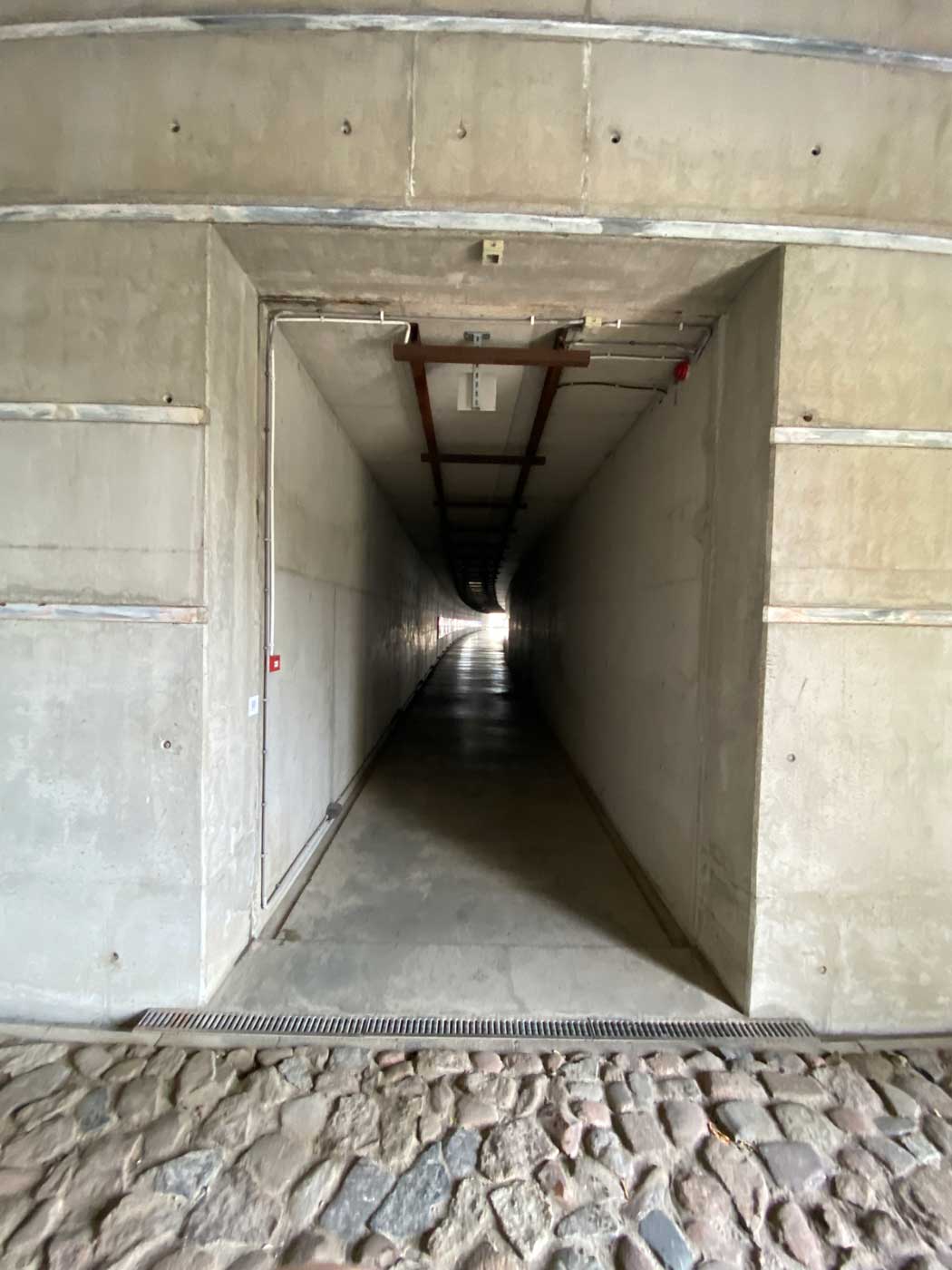 In de tunnel hangen achter glaspanelen ook lijsten met namen van gedeporteerde Joden.