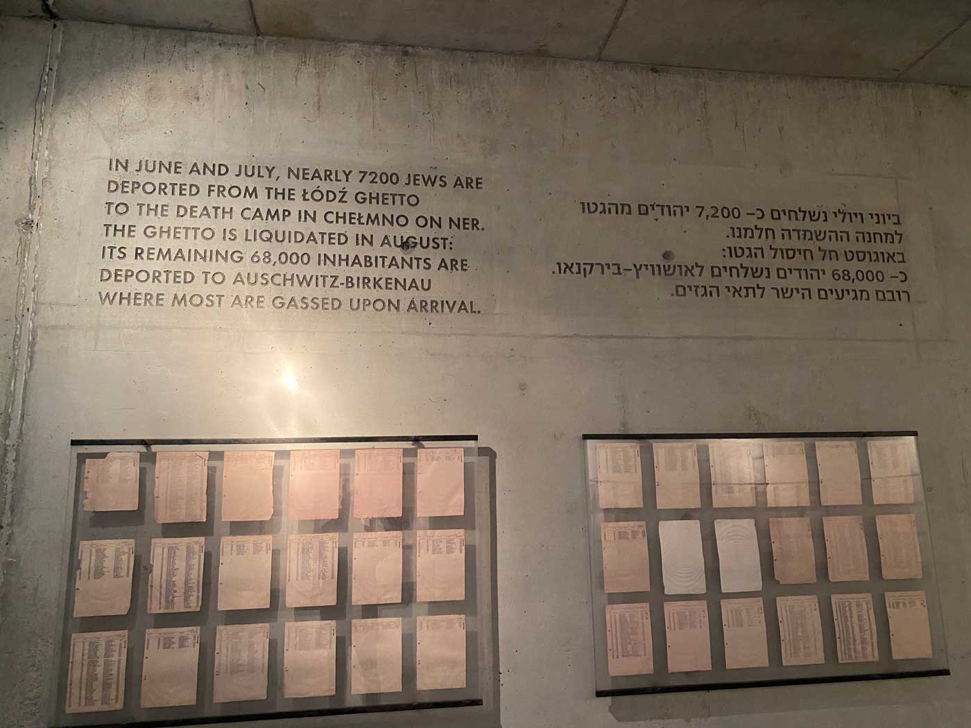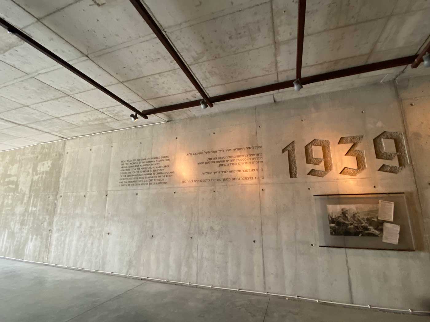 De tunnel die aan de kant van het herdenkingsgebouw nog vrij smal is, wordt op den duur steeds breder. Uiteindelijk kom je uit bij het begin van de oorlog. Hier wordt aangegeven dat er toen ongeveer 230.000 Joden in Lodz woonden. Nadat Lodz geannexeerd was door Duitsland werd er al vrij snel de beslissing gemaakt om de Joden in een apart deel van de stad onder te brengen.