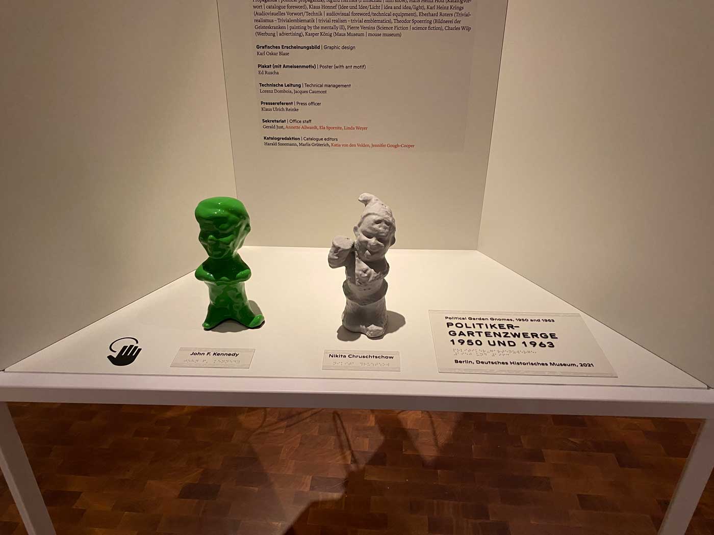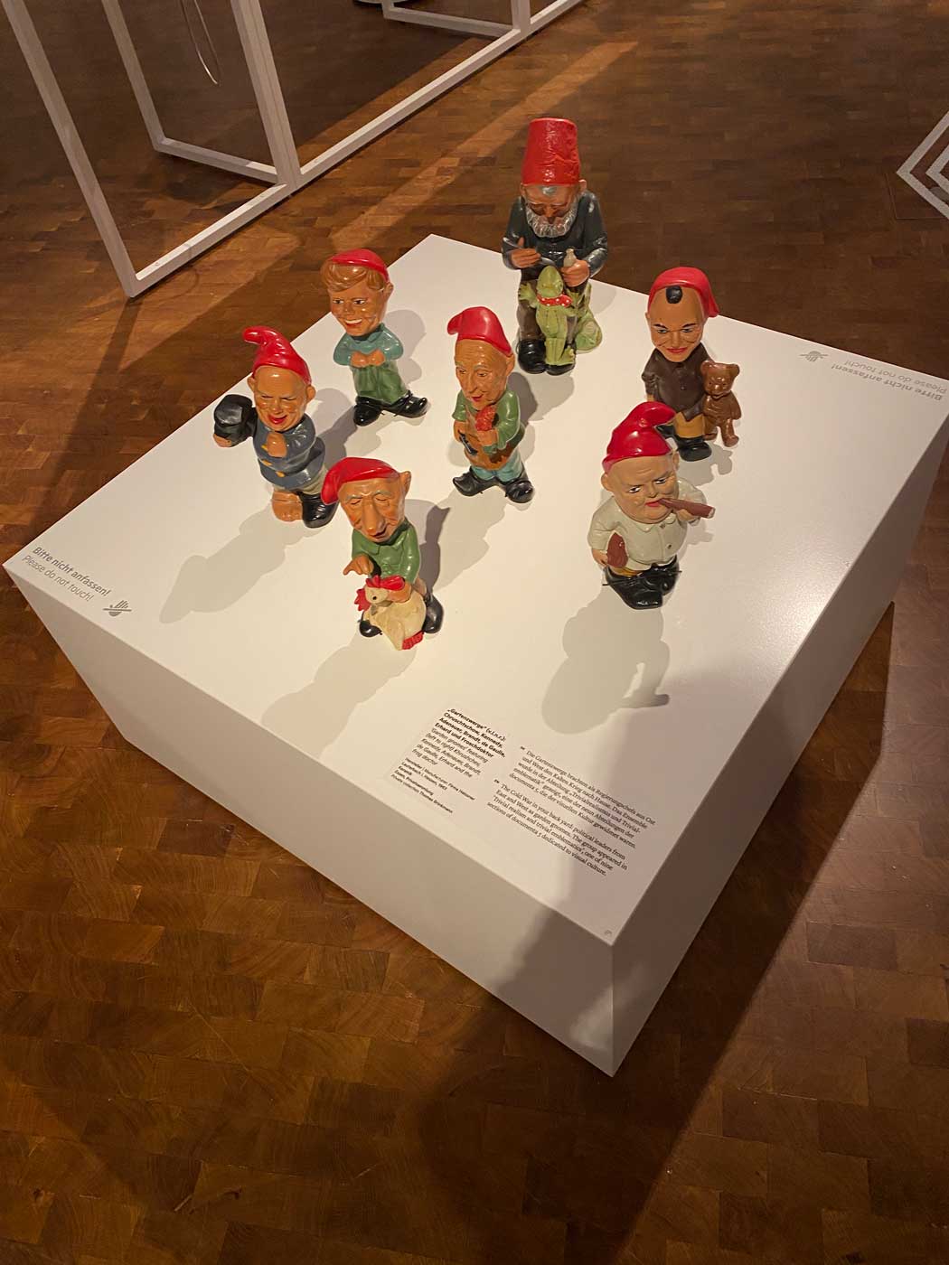 Een hele verzameling van kleine tuinkabouters die politici zoals Chroesjtsjov, Kennedy, Adenauer, Brandt, de Gaulle en Erhard moesten uitbeelden was te zien op Documenta 5.