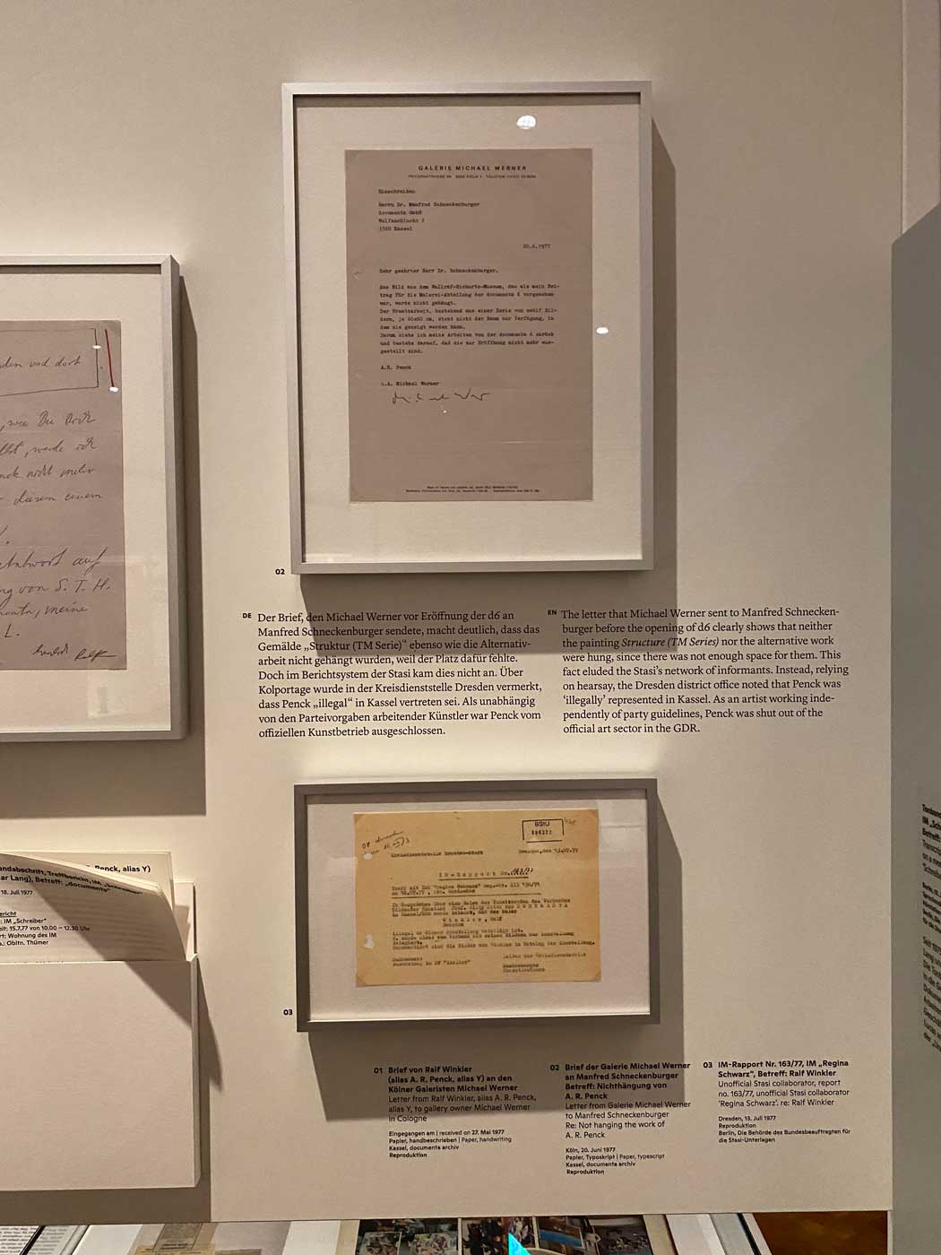 De aanwezigheid van deze kunstenaars uit de DDR riep de nodige protesten op. Een aantal kunstenaars trok uit protest hun kunstwerken terug. De kritiek was er vooral op gericht omdat hier ging om kunstenaars de kunst maakten volgens de officiële richtlijnen van de DDR. Kunstwerken van kunstenaars die in de DDR werkten maar dat niet volgens de officiële richtlijnen deden, kregen juist geen plek op deze Documenta. Hierover is een brief te zien van de Oost-Duitse kunstenaar A.R. Penck. Sinds 1969 werd hij in de gaten gehouden door de geheime dienst van de DDR om uiteindelijk in 1980 de DDR te moeten verlaten.