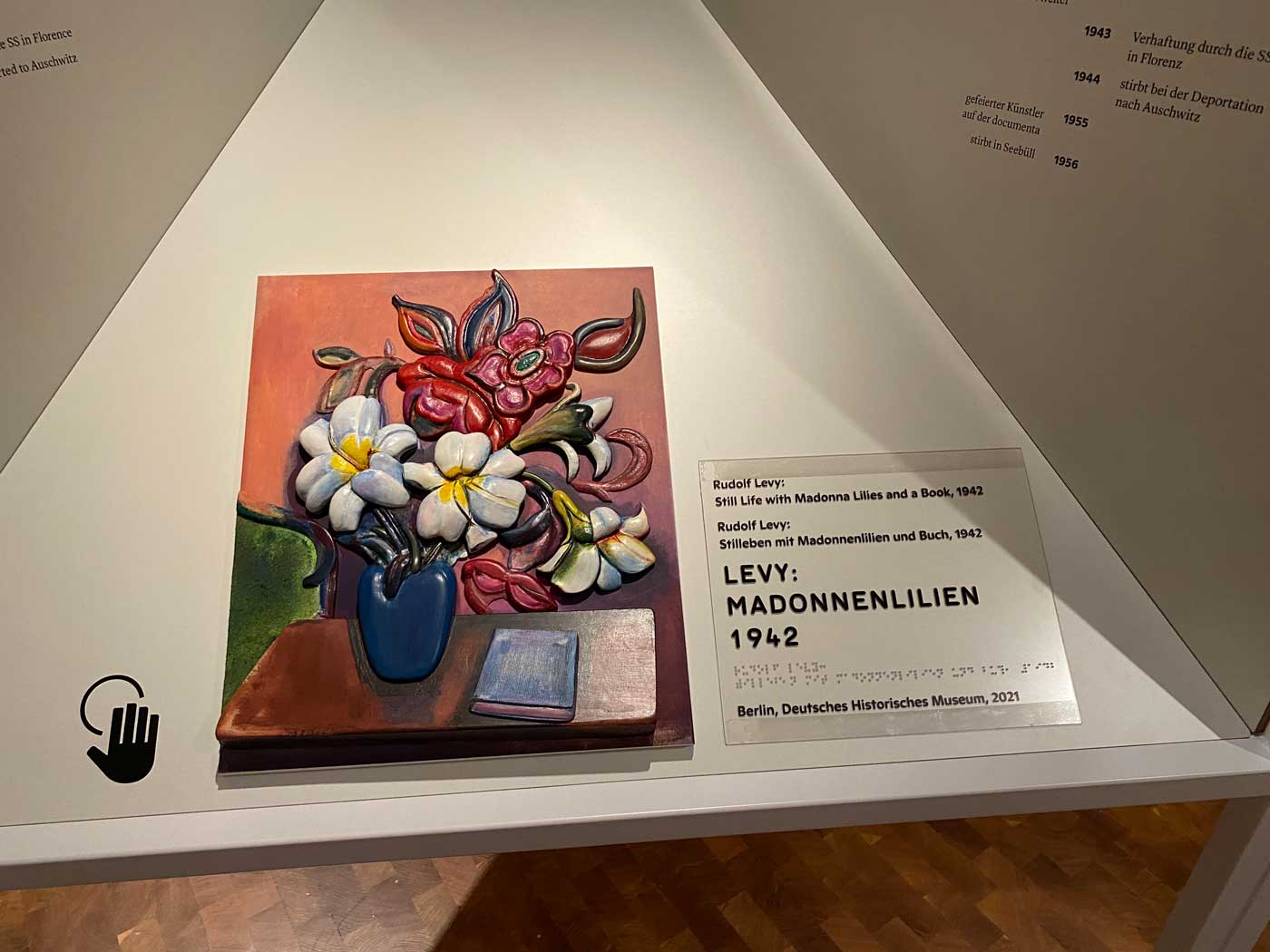 De Duitse kunsthistoricus Werner Haftmann was verantwoordelijk voor de eerste drie Dcoumenta’s. Hij liet werken van kunstenaars die ook in de nazitijd actief waren zien terwijl hij tegelijkertijd werken van Joodse kunstenaars zoals Rudolf Levy (vervolgd door de nazi’s en in 1944 gestorven in Auschwitz) niet liet zien. Een werk van Levy is het onderstaande stilleven met bloemen en een boek.