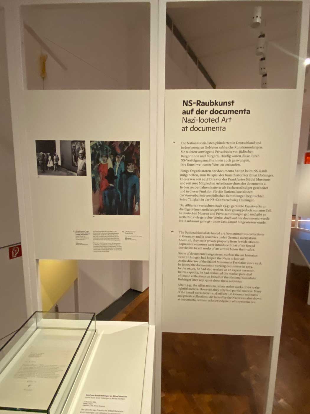 Door de nazi’s werden zowel in Duitsland maar ook in de later bezette landen kunstverzamelingen van Joden geroofd. Ook dit soort geroofde kunst was te zien bij een aantal edities van de Documenta zonder dat dit werd vermeld.