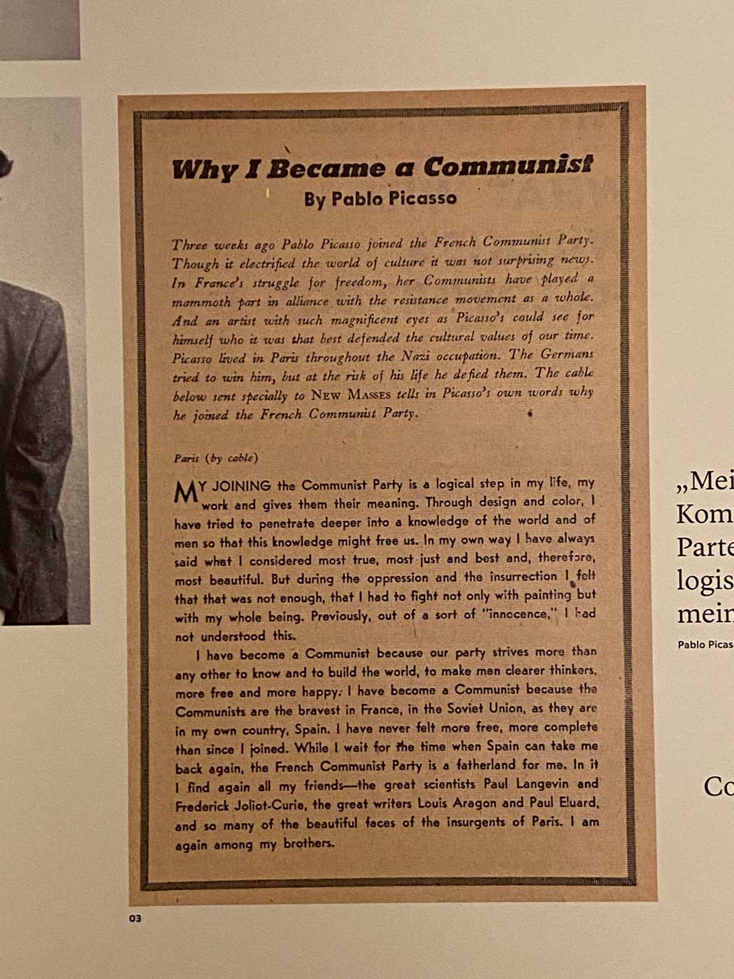 De Documenta was tijdens de koude oorlog een West-Duitse tentoonstelling. In de DDR zijn er wel plannen geweest om een tegenhanger op te gaan zetten, mar die plannen zijn nooit van de grond gekomen. In de DDR werd de Dcoumenta feitelijk doodgezwegen. Als er al over bericht werd dan was het in negatieve zin. De bekende kunstenaar en communist Pablo Picasso was op de eerste Documenta met 30 kunstwerken te zien. Tot en met 1987 (14 jaar na zijn dood) waren er werken van hem op deze tentoonstelling te zien.