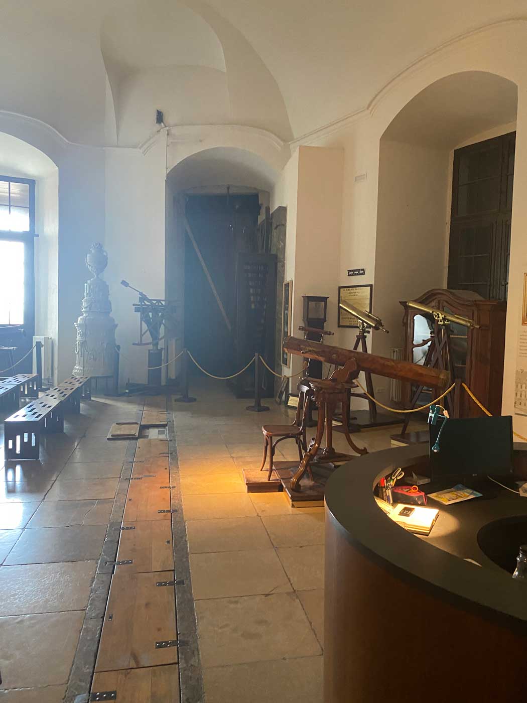 In een kleine ruimte op de zesde verdieping staat de verzameling van astronomische apparaten van dit museum. In de 18de en 19de eeuw zijn er vanaf deze plek veel waarnemingen gedaan. Wat wel weer jammer is, is dat de voorwerpen hier eigenlijk zijn weggezet zonder een nadere toelichting. Ook hiervoor geldt weer, dat er van dit museum echt veel meer te maken is. Opvallend was wel dat er een informatieblad in veel talen (ook in het Nederlands!!) beschikbaar was over wat hier allemaal te zien was.