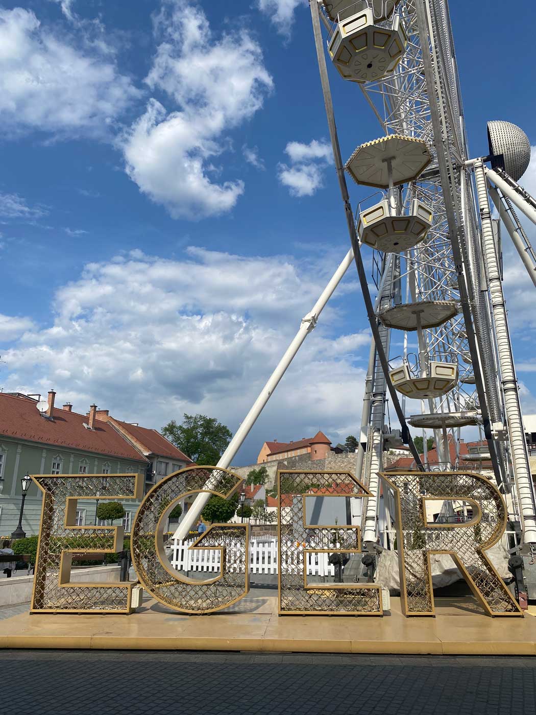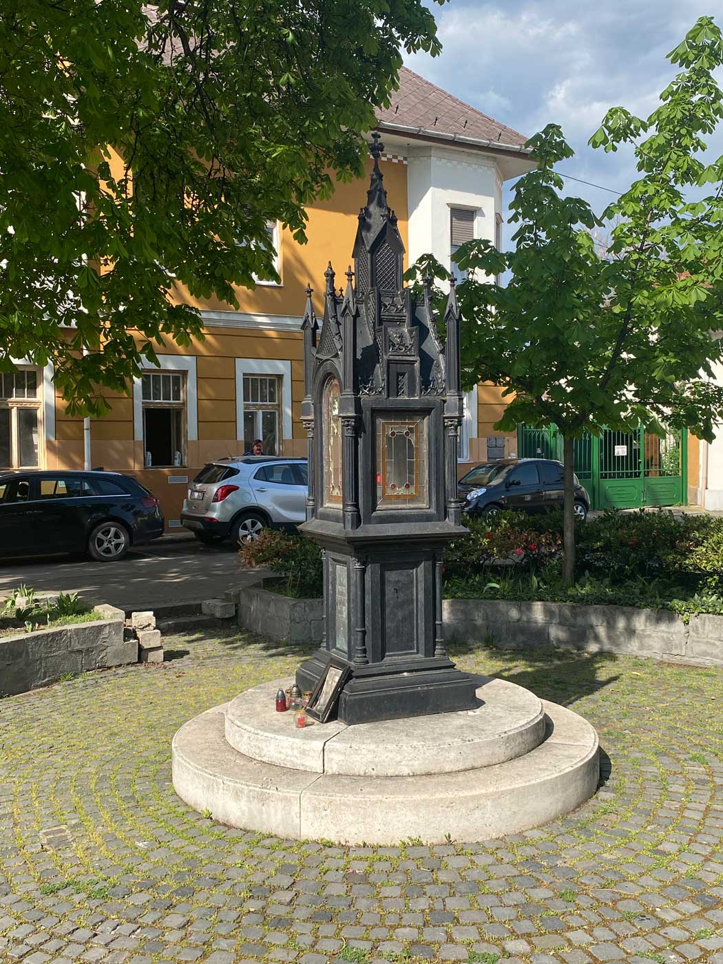 Tijdens mijn wandeling kwam ik nog het onderstaande monumentje tegen. In eerste instantie lijkt het iets religieus, maar het is een monument ter nagedachtenis aan de mensen die gesneuveld zijn tijdens de Tweede Wereldoorlog. Het monument is een klein kerkje en is hier weggezet in 1989. In het najaar van 1944 zorgde terugtrekkende Duitse troepen voor grote verwoestingen in Eger. Het station raakte beschadigd en bruggen werden opgeblazen. Op 30 november 1944 werd de stad door de Russen bevrijd. Op 12 december vond er nog een bombardement plaats van Duitse vliegtuigen.