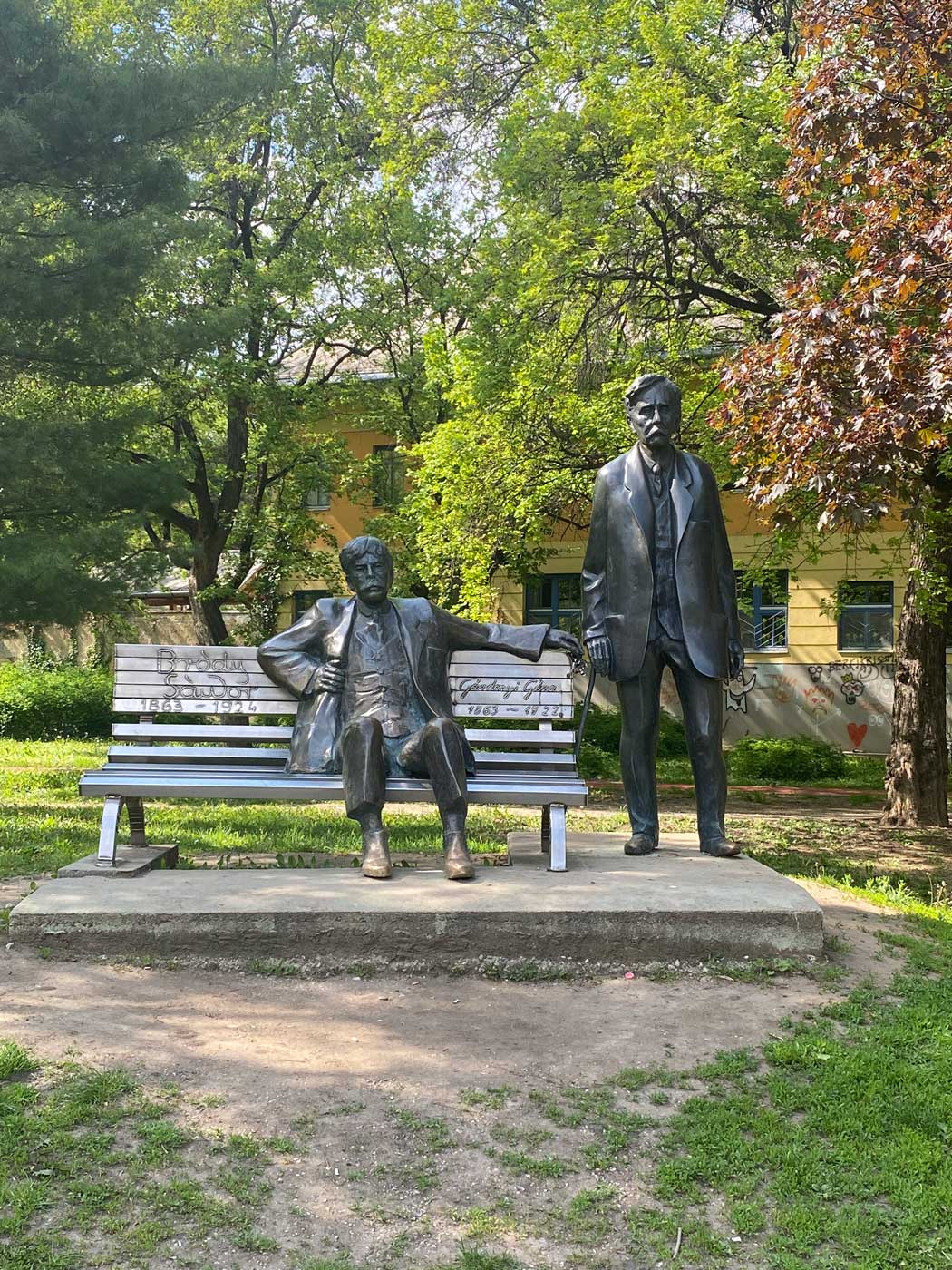 Een van de beelden in het park is dit bankje waarop Geza Gardonyi en Sandor Brody zitten. De eerste schrijver is al eerder langskomen omdat hij begraven ligt op het kasteel van Eger. De tweede schrijver was actief als journalist voor verschillende kranten en heeft veel artikel, verhalen, feuilletons en boeken geschreven. Hij is overleden in 1924, twee jaar nadat Geze Gardonyi gestorven is.