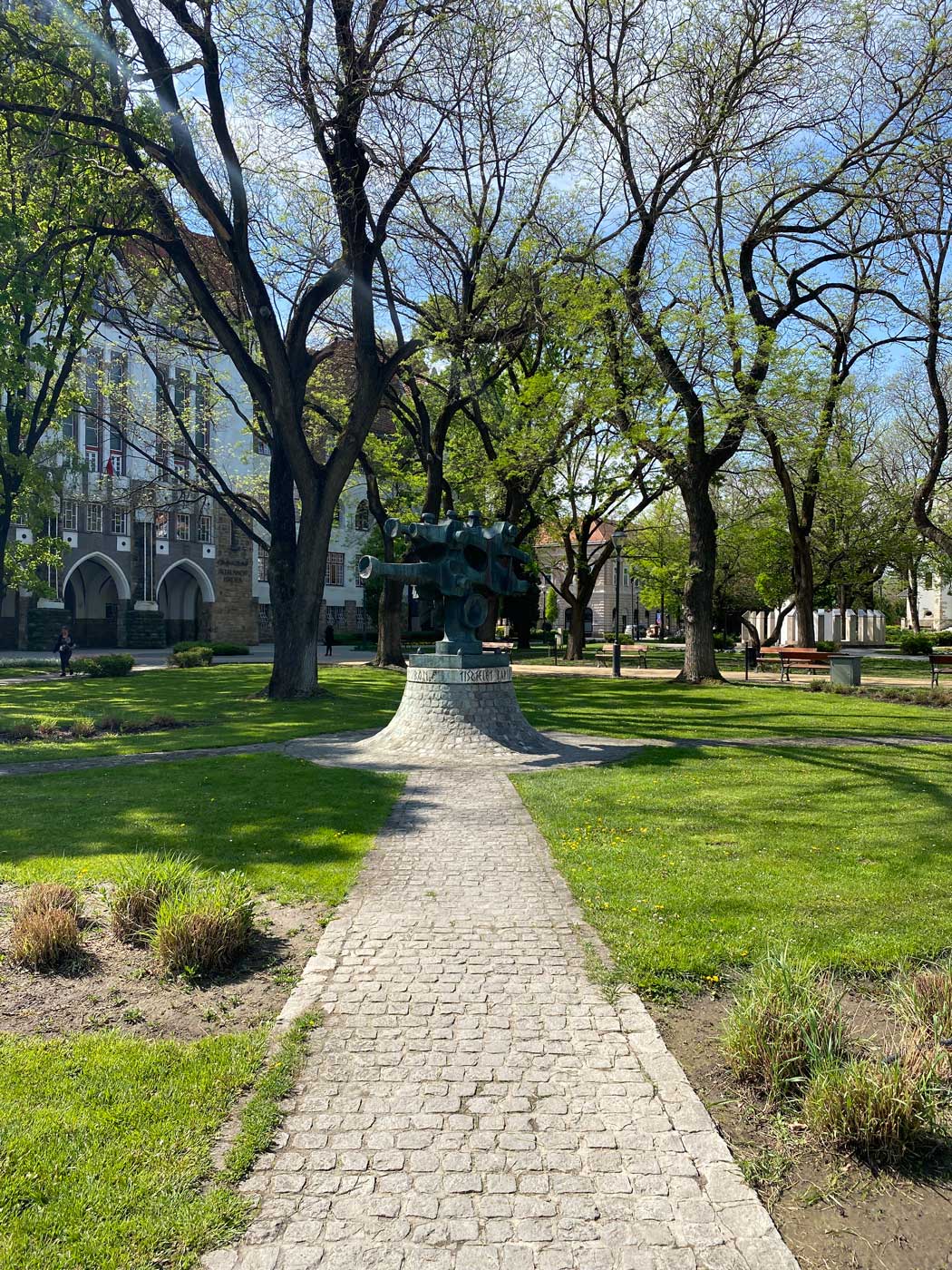 Als je het station uitloopt, kom je meteen terecht in een park. Naast dit park zou een museum moeten zijn dat vernoemd is naar de Hongaarse dichter Jozsef Katona. Het gebouw met het opschrift “museum” staat er, maar verder is alles gesloten en is er niets te zien dat aangeeft dat er hier nog iets te zien is. In de reviews op Google Maps kun je vinden dat dit museum al jaren gesloten blijkt te zijn.