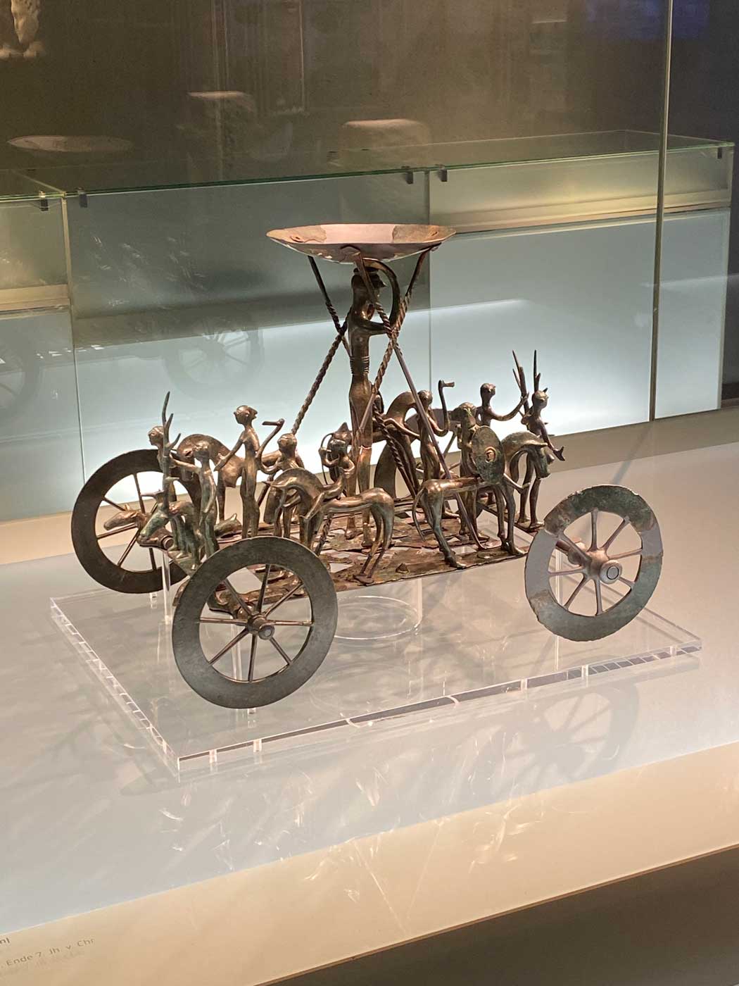 Een van de meest bijzondere objecten is te vinden in het eerste deel van het museum. Het is de Cultuswagen van Strettweg. Dit is een bronzen voorwerp uit de 7de eeuw voor Christus die in 1851 in het plaatsje Strettweg is gevonden. De wagen is 46,2 centimeter hoog. Het centrale onderdeel is een 32 centimeter hoge vrouwelijke figuur die met haar handen omhoog op het midden van de wagen staat en een soort schaal draagt. Dit voorwerp is voor 50 miljoen verzekerd.