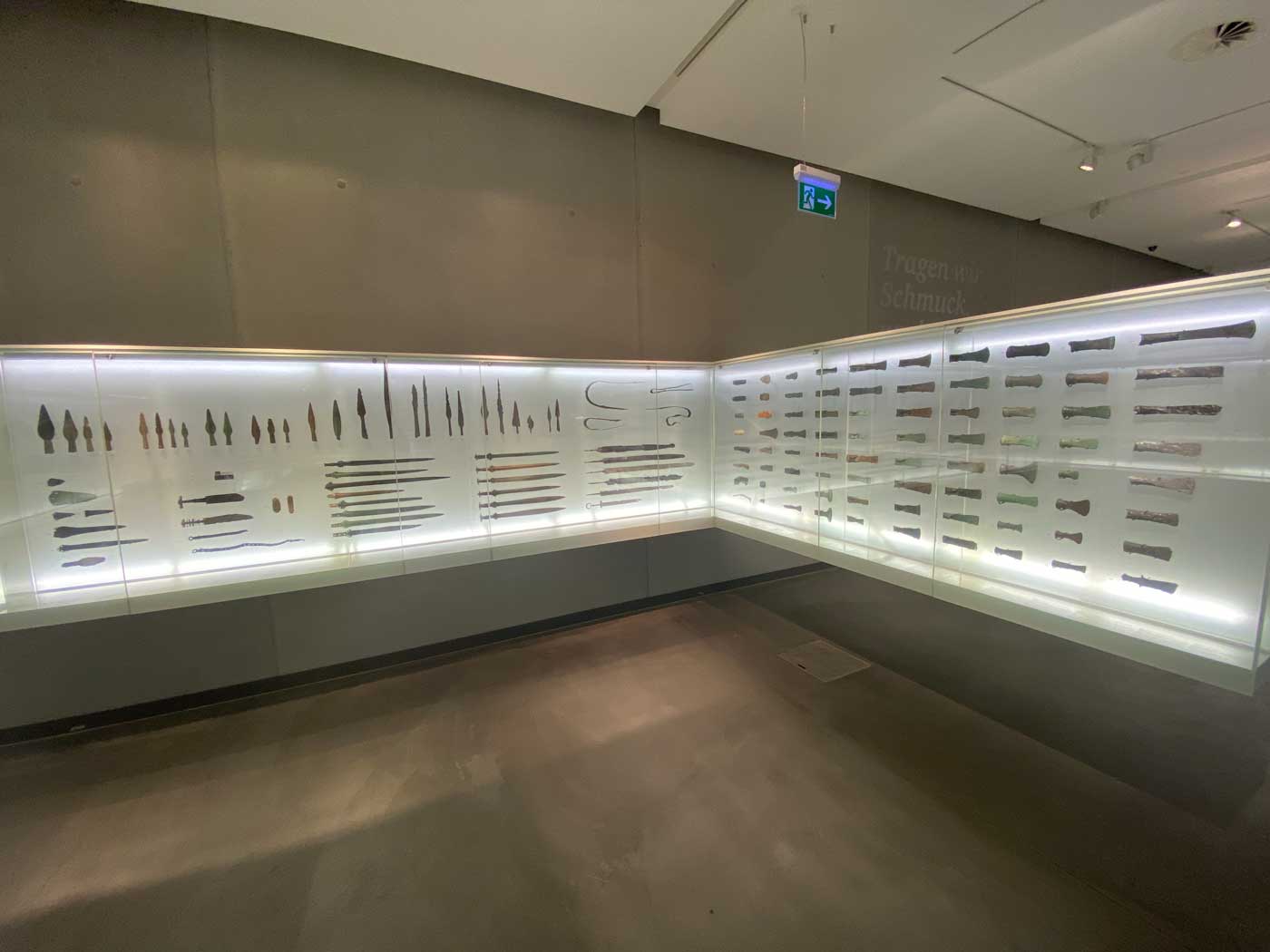 De volgende foto laat de grote collectie zwaarden en lansen uit onder andere de koper- en de bronstijd van dit museum zien.