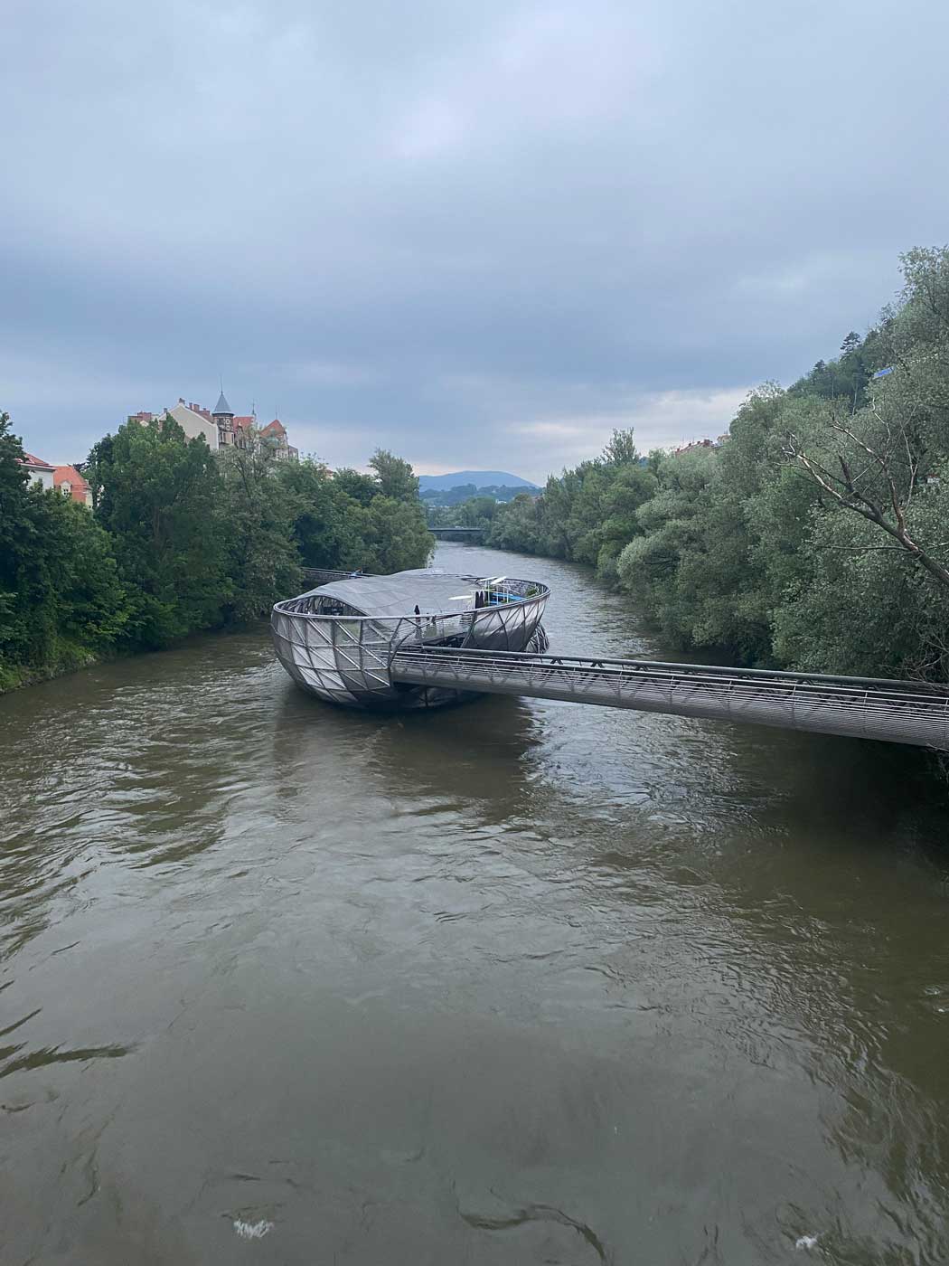 In de rivier de Mur bevindt zich sinds 20 jaar een kunstmatig aangelegd eiland. Dit is geopend in het jaar 2003 toen Graz de culturele hoofdstad van Europa was. Via een aangelegd wandelpad kom je bij het eiland waarop zich een open lucht theater bevindt en ook een cafe met kinderspeelplaats.
