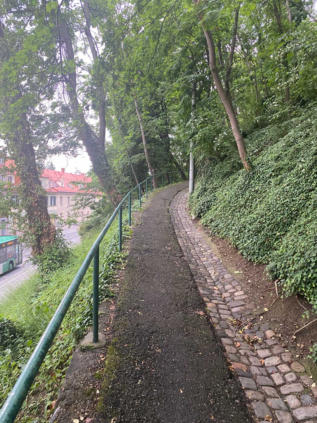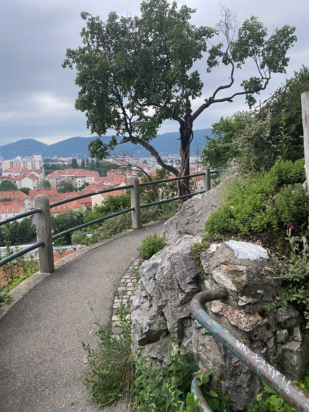 Via een ander pad dat in 1928 is aangelegd ter gelegenheid van het 800 jarig bestaan van de stad Graz ben ik weer naar beneden gewandeld richting het centrum van de stad.