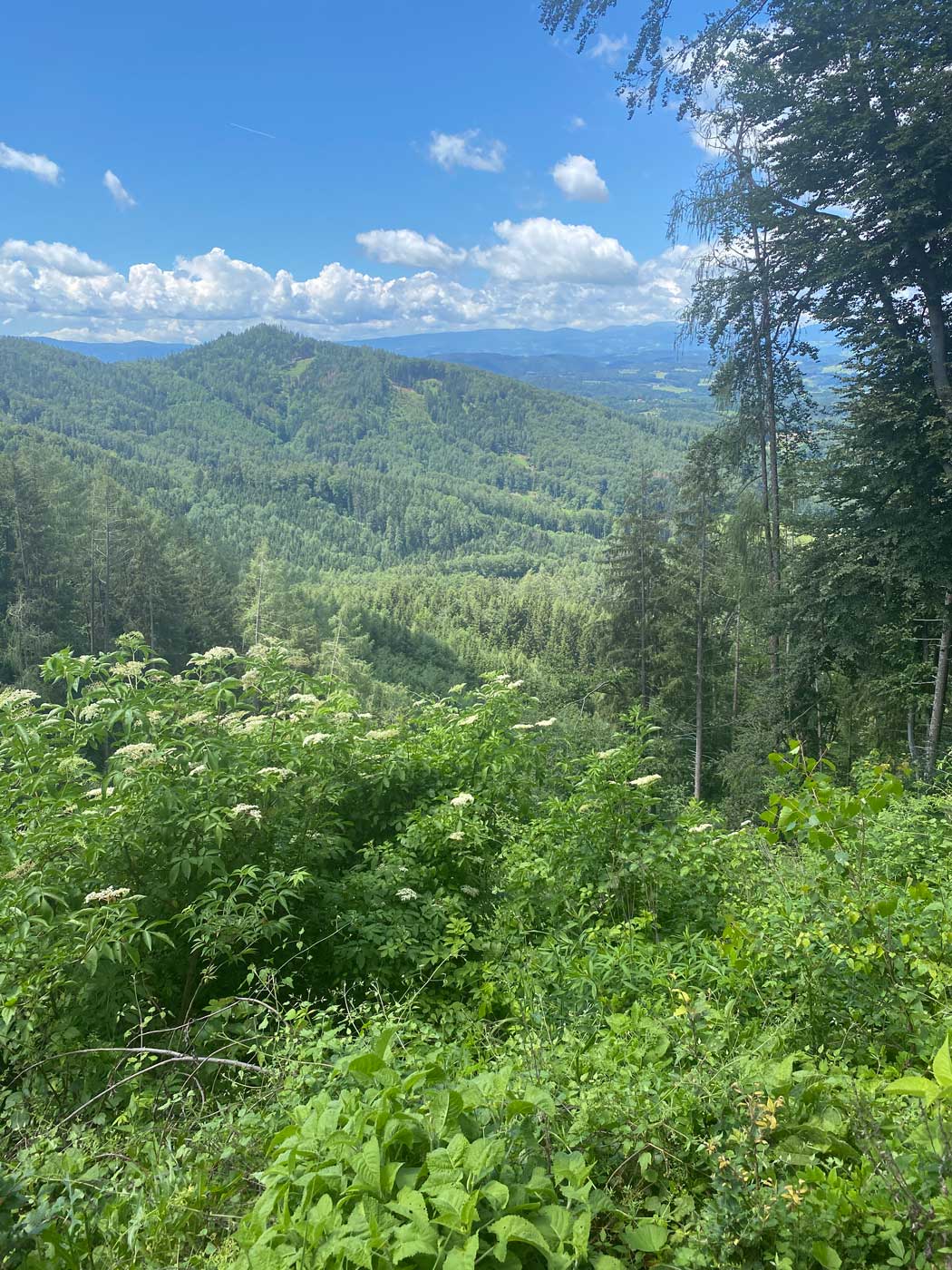 De wandeling gaat vervolgens verder door de bossen die zich bevinden in dit heuvelachtige gebied rondom Graz.