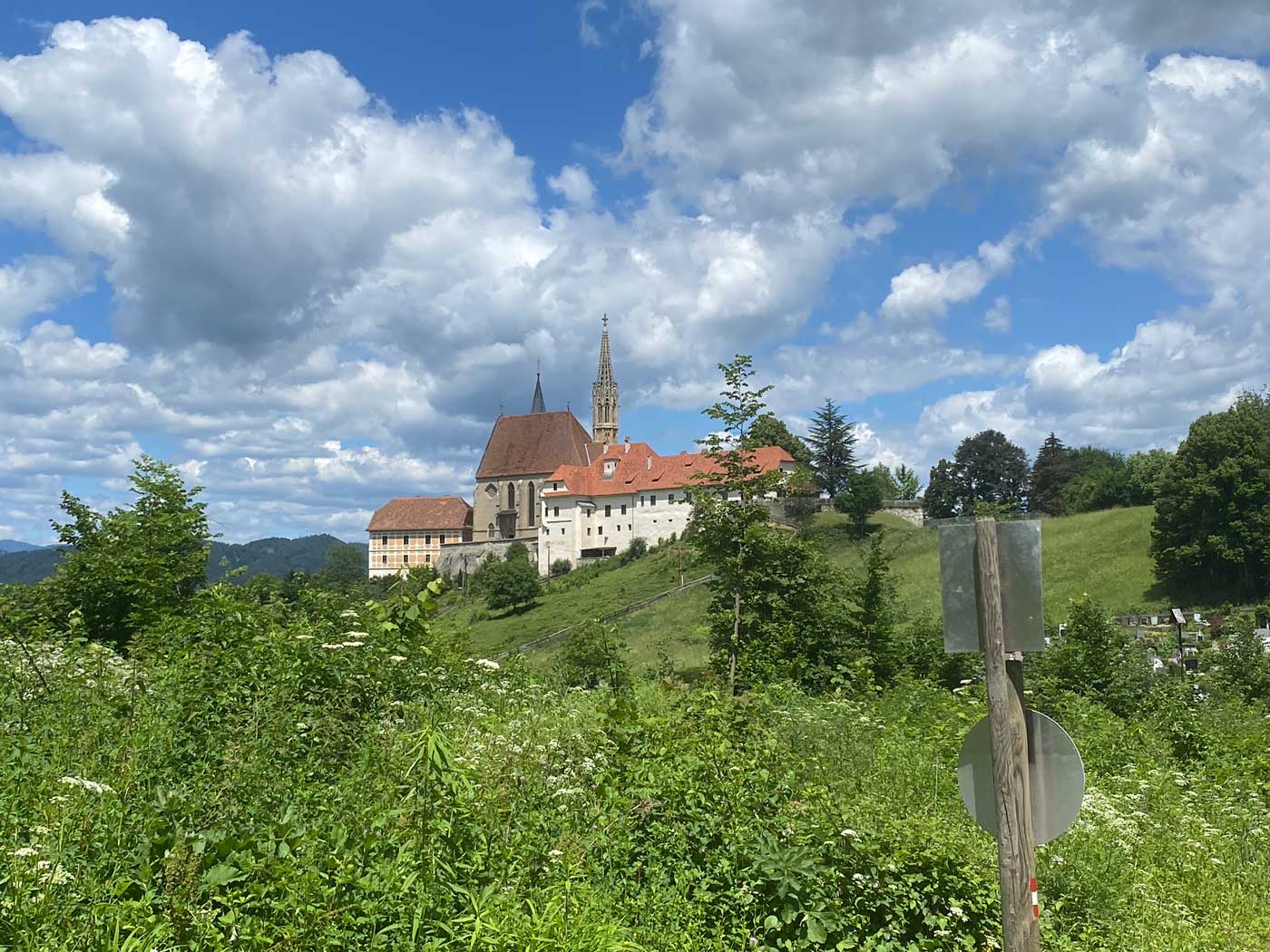Vanaf hier gaat de wandelroute weer langzaamaan naar beneden. Genietend van de mooie uitzichten kom je dan uiteindelijk uit in het plaatsje Judendorf-Strassengel. Hier bevindt zich de Bedevaartskerk van Maria Strassengel.