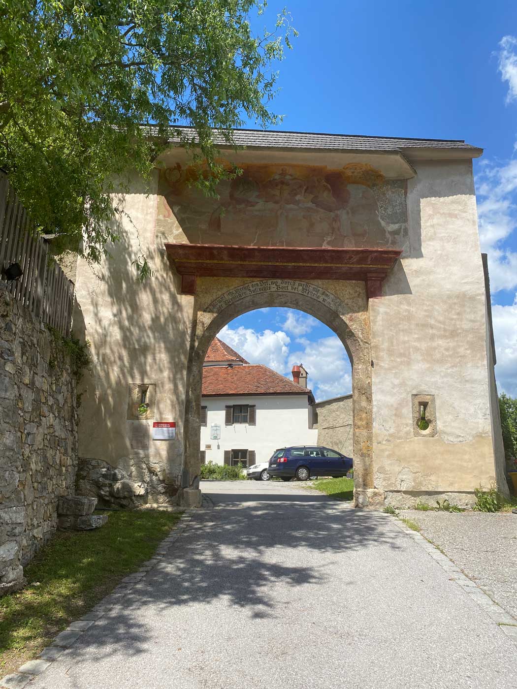 Vanuit de kerk loopt er een pad dat uitkomt in het moderne deel van de plaats Judendorf-Strassengel. Ondanks dat het Tweede Pinksterdag was en ook nog eens prachtig weer, was het in het dorpje zelf buitengewoon rustig. In het grote stadspark waren nauwelijks mensen te vinden.
