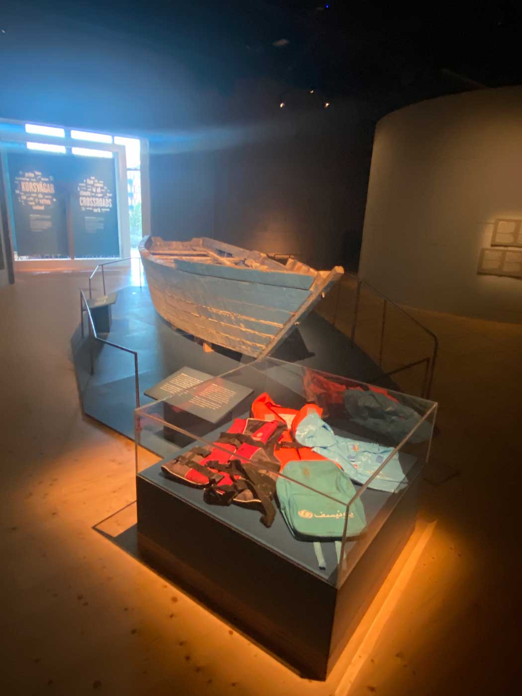 De eenvoudige vissersboot van de volgende foto is gebruikt door vluchtelingen om de Middellandse Zee over te steken. Met deze boot zijn in het jaar 2004 in totaal 25 personen aangekomen in het zuiden van Spanje. Normaalgesproken worden deze boten door de politie verbrand. De boot die in het museum te zien is, is bewaard gebleven omdat hij als bewijs gediend heeft in een zaak over mensenhandel.