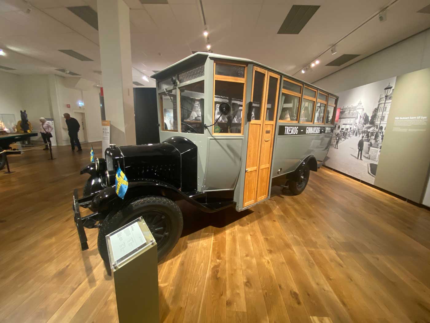 De eerste bus werd verkocht aan een winkelier in het plaatsje Treskog. Dit betekende in de praktijk dat er hierdoor een verbinding ontstond met de moderne wereld. Inwoners konden naar een grotere plaats reizen om daar producten op de markt te kopen. Het betekende ook wat op sociaal gebied omdat in grotere steden er meer mogelijkheden waren om andere mensen te ontmoeten. De auto’s op de volgende foto komen uit de jaren ’30 van de vorige eeuw.