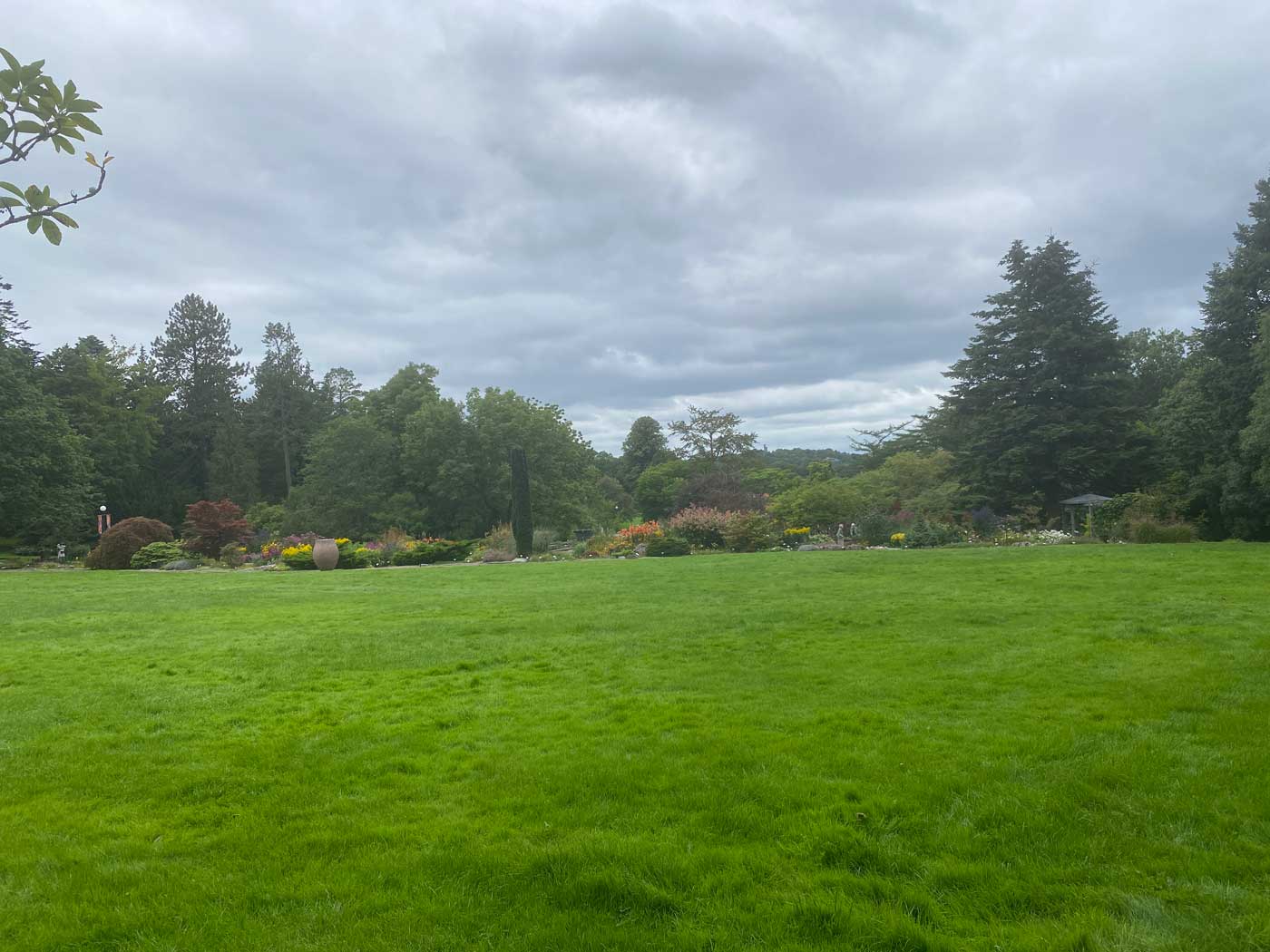 Onderdelen van de tuin zijn onder andere een vallei met rododendrons, een kruidentuin en een groot grasveld dat het geheel ook een parkachtige sfeer geeft.