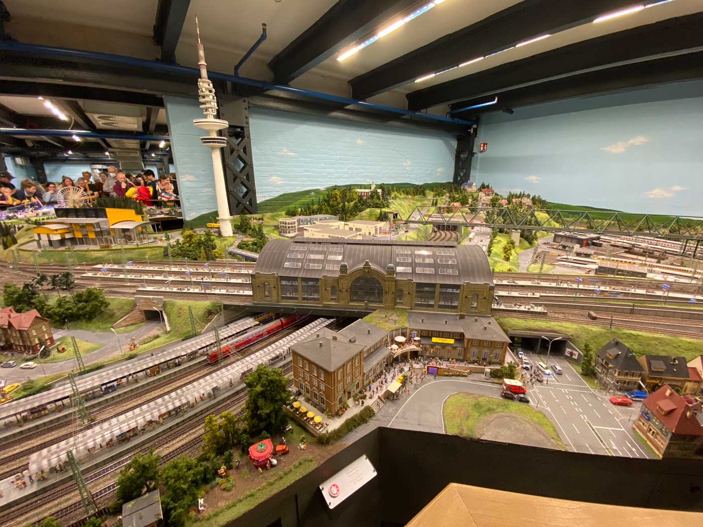 Een apart miniatuur van de stad Hamburg kan natuurlijk niet ontbreken. Het centraal station van Hamburg is met 18 sporen het grootste station in dit museum. Het maken hiervan met behulp van lasertechniek heeft vijf maanden geduurd.