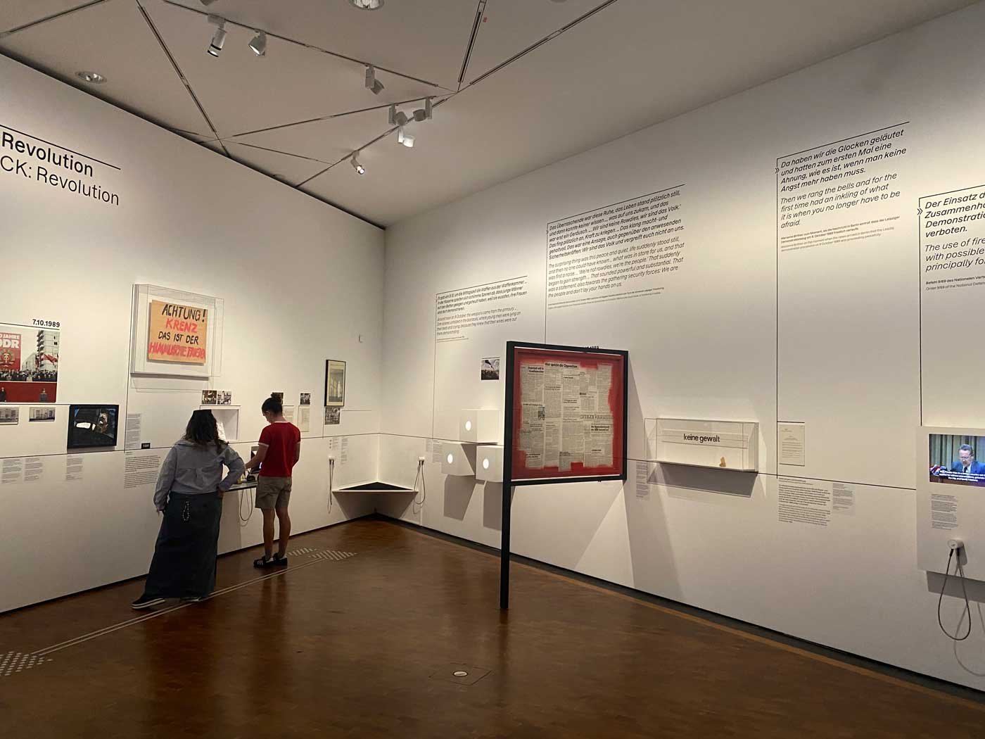 Hierboven heb ik slechts foto’s laten zien over drie van de veertien gebeurtenissen die hier in het Duitse Historische Museum belicht worden. De tentoonstelling wordt afgesloten in een aparte ruimte waarin een aantal tablets liggen. Hier heeft de bezoeker de mogelijkheid om door middel van een interactief spel zelf de keuzes te maken ronden de val van de muur in 1989.