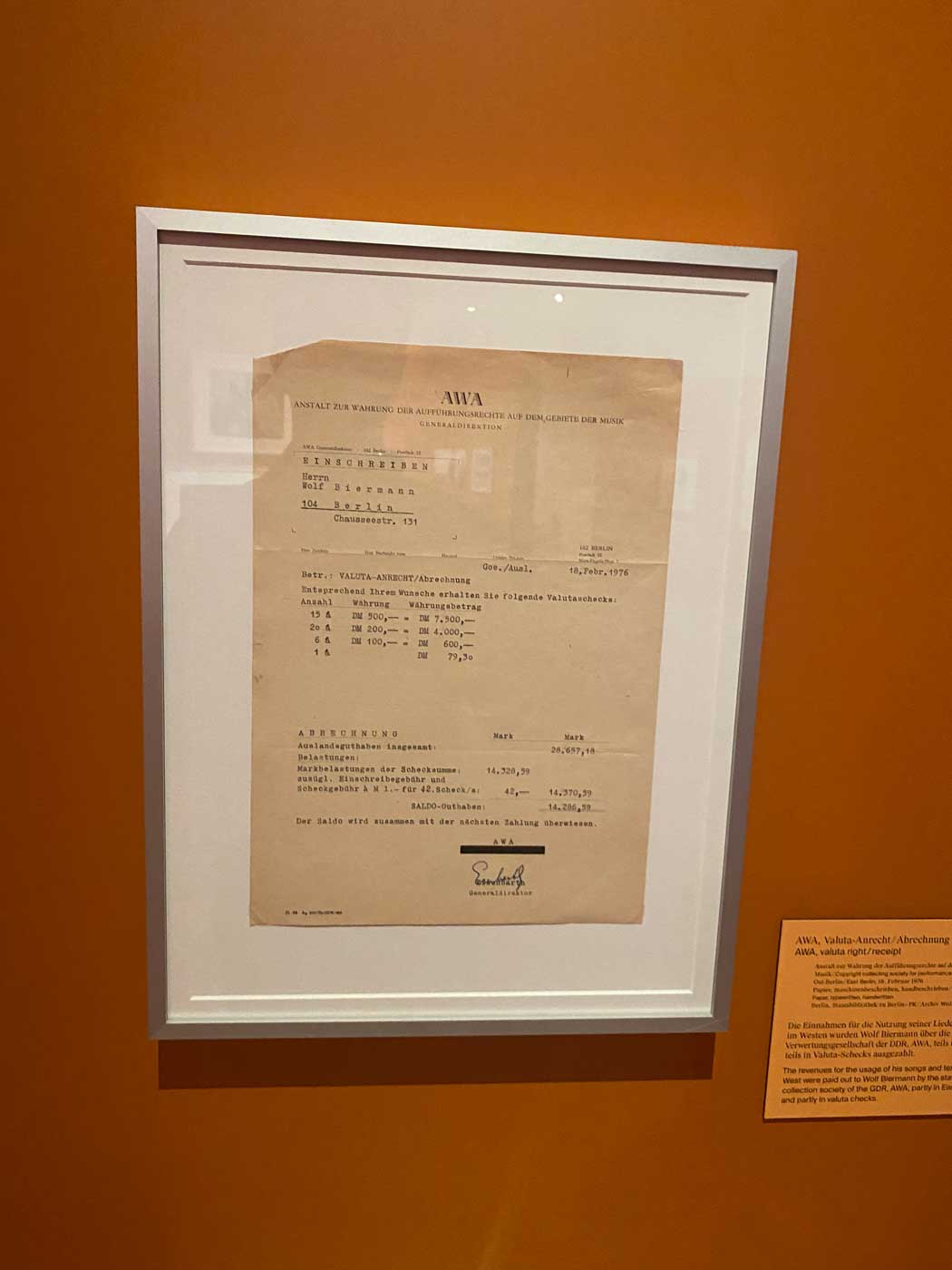 De tweede tijdelijke tentoonstelling gaat over de Duitse zanger Wolf Biermann. Toen hij zeven jaar oud was, werd zijn vader in Auschwitz vermoord omdat hij Jood en communist was. Dit motiveerde Biermann om later naar de DDR te verhuizen en daar te helpen aan de opbouw van het socialisme. Hij was echter ook kritisch ten opzichte van de regering van de DDR. Toen hij in november 1976 in Keulen was voor een concert werd het staatsburgerschap van de DDR van hem ingetrokken waardoor hij niet meer naar dit land kon terugkeren.