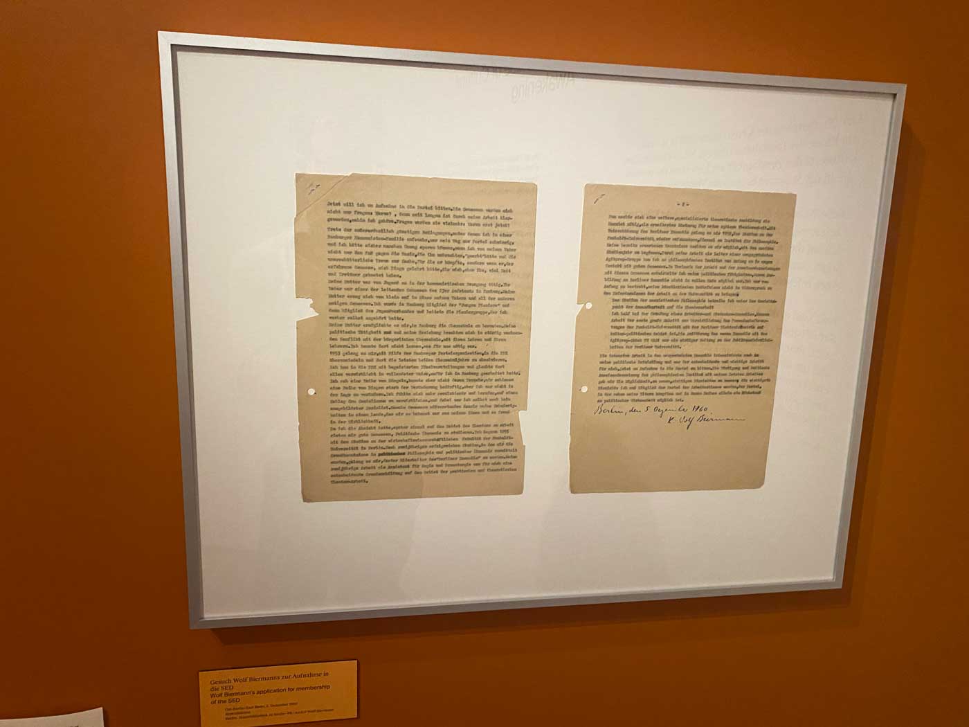 In 1960 verzocht hij in een brief, die hier te zien is, om lid te worden van de SED. Hij werd twee jaar lang kandidaat-lid maar uiteindelijk niet als volwaardig lid van de partij geaccepteerd.