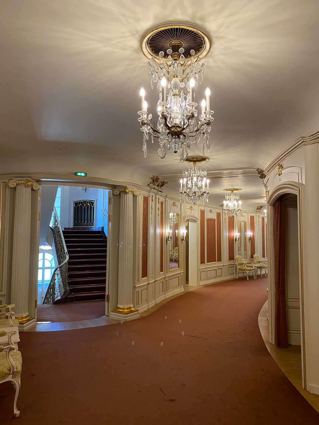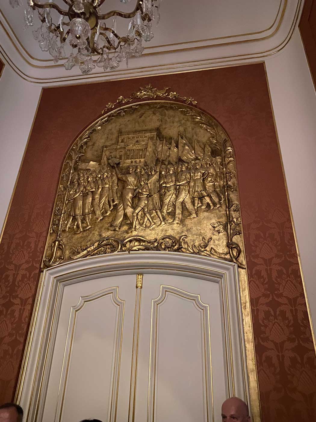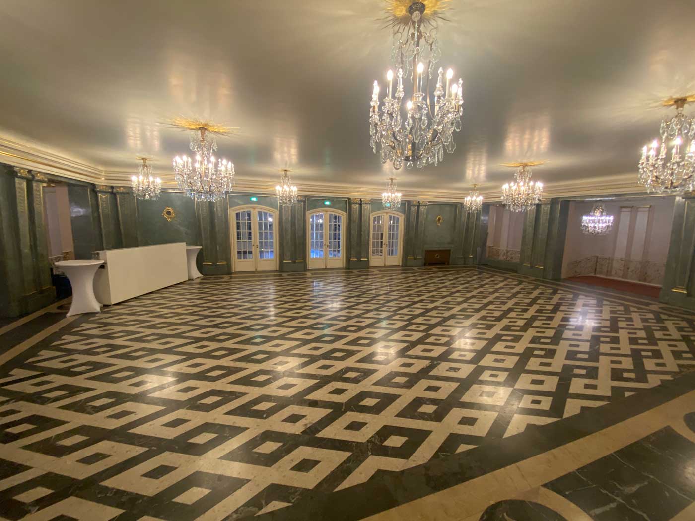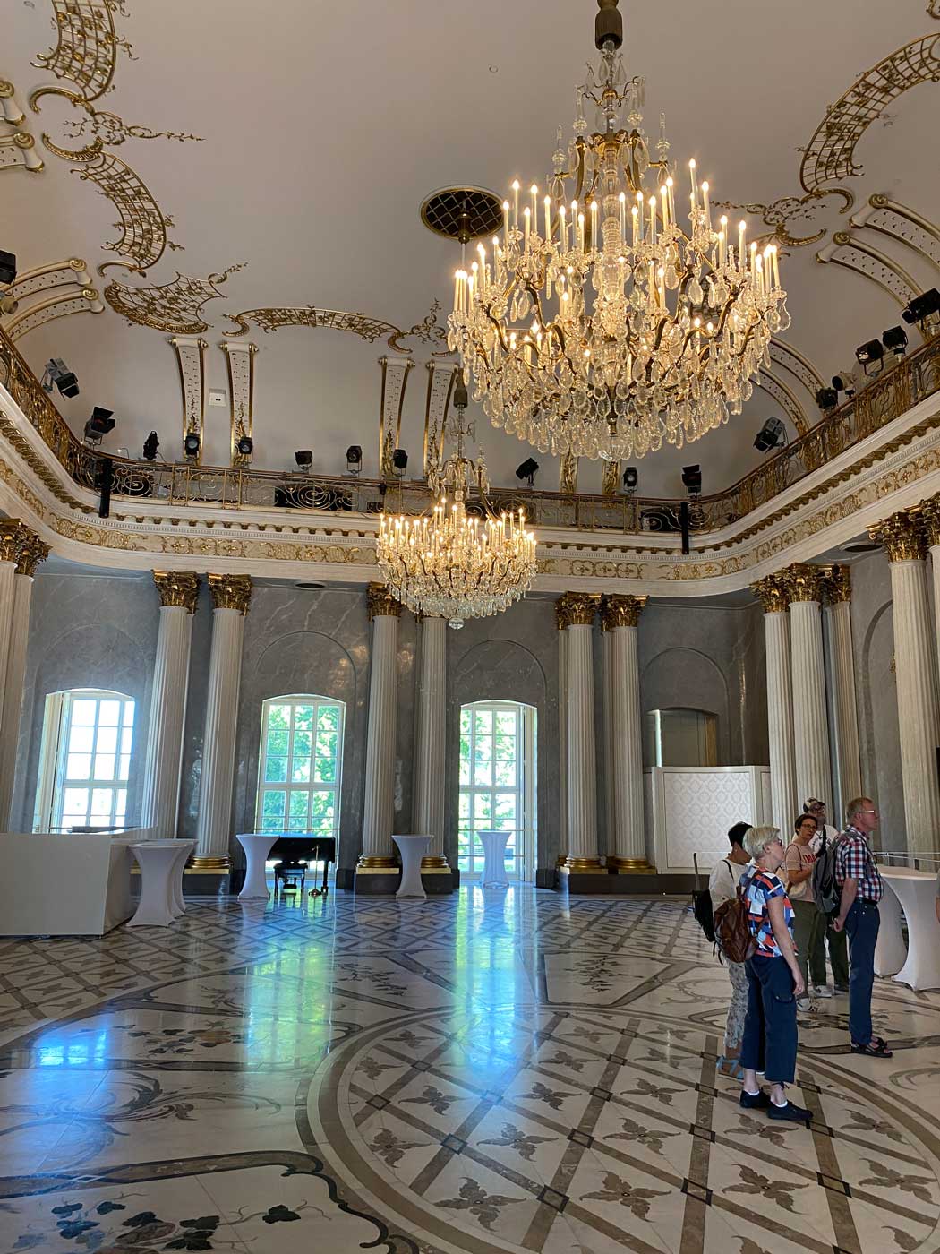 Voordat we naar de grote operazaal gingen, werd eerst een bezoekje gebracht aan de Apollozaal van het gebouw. Deze in vergelijking relatief kleine zaal kan gebruikt worden voor bijeenkomsten en kleinschalige concerten. De zaal was oorspronkelijk bedoeld als feestruimte. De huidige inrichting van de zaal is geïnspireerd op het slot Sanssouci.