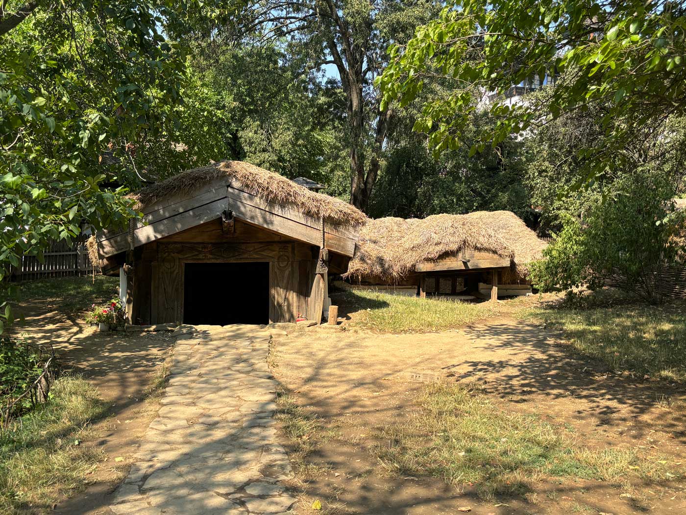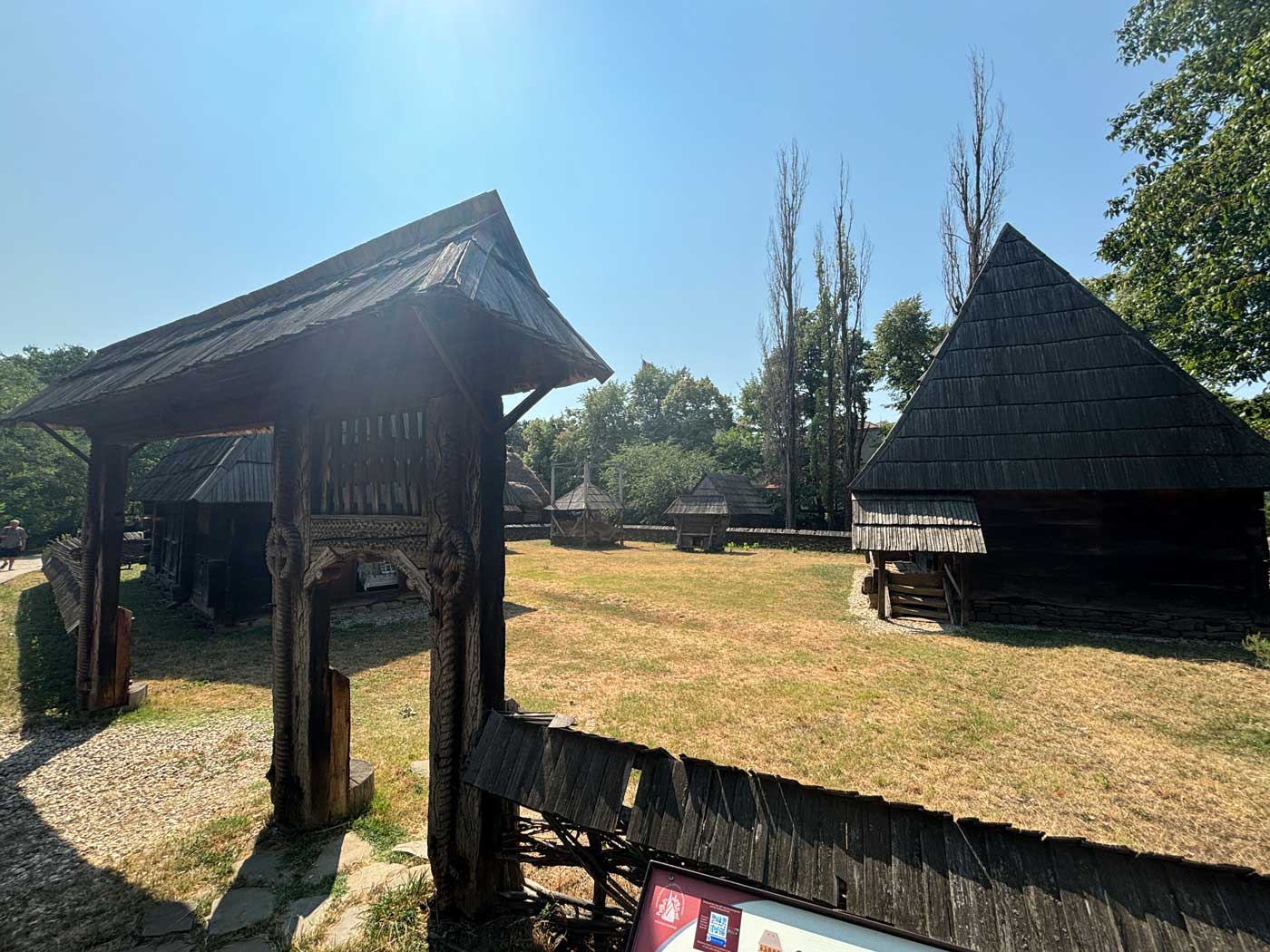 Het openluchtmuseum van Boekarest is een onderdeel van het stadspark. Het museum geeft een mooi overzicht van allerlei historische bouwwerken uit de Roemeense geschiedenis. Het gaat hierbij dan vooral op gebouwen die op het Roemeense platteland hebben gestaan en naar dit museum zijn gebracht. Het was deze donderdagmorgen erg rustig wat zeker ook lag aan de temperaturen die rond 11 uur al de 40 graden naderden. De wandeling door het museum gaat verder bij de wijnpers op de volgende foto uit het einde van de 18de eeuw.