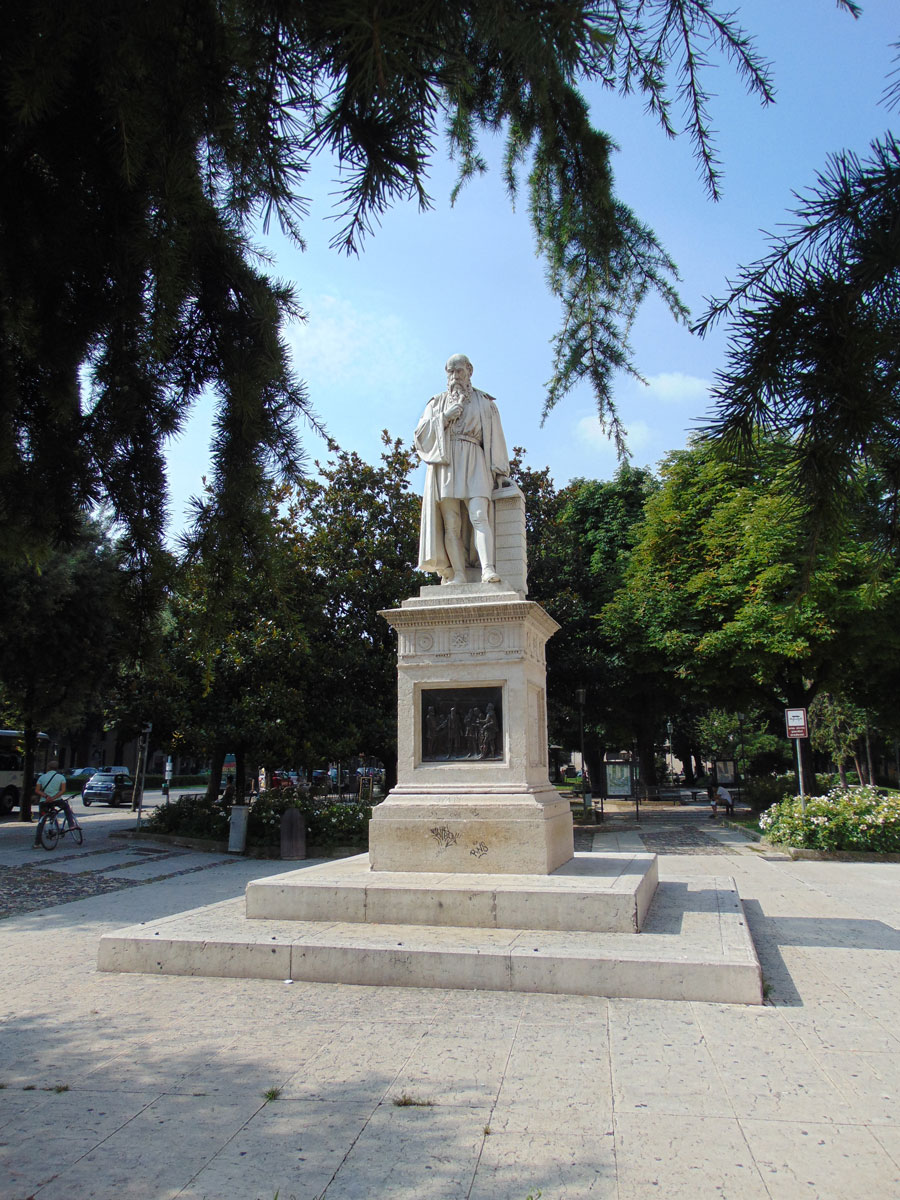Via de "Corso Porta Nuova" ben ik richting het centrum van Verona gelopen. In de foto hieronder is nog een beeld te zien dat in het "Piazza Pradaval" staat. Een klein parkje dat langs deze straat ligt.