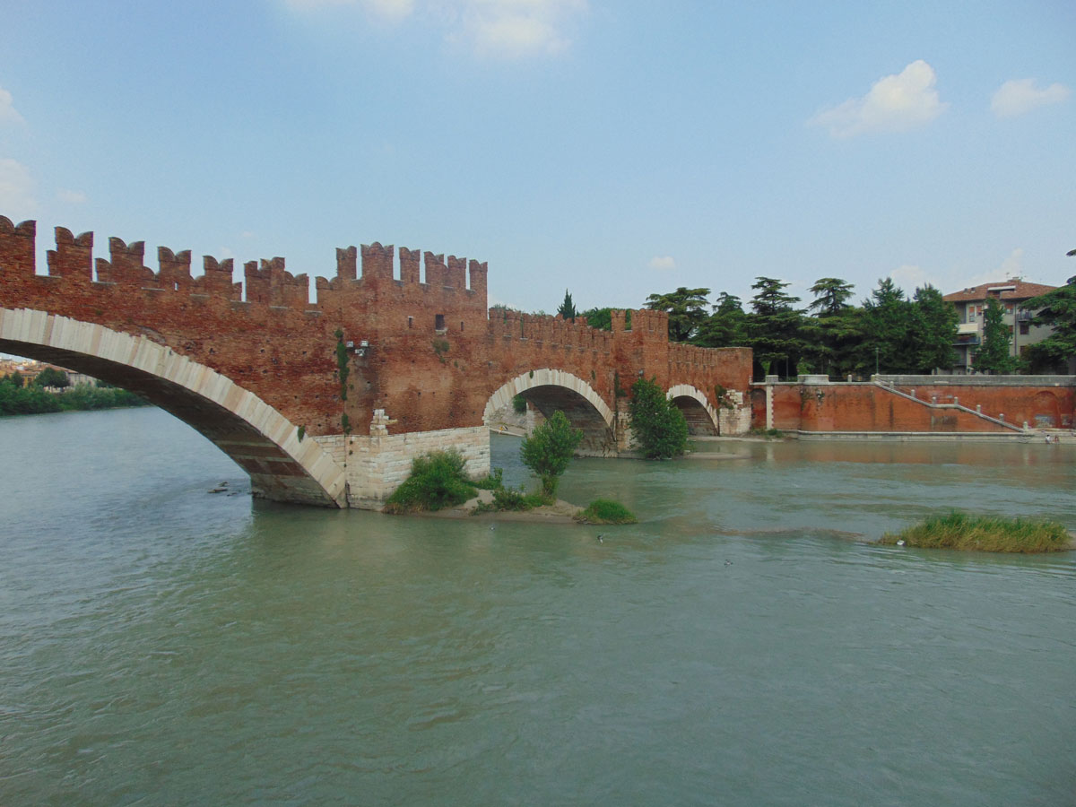 Vanuit dit gebouw heb je ook een mooi zicht op de Castelvecchio brug. Deze brug was gebouwd als ontsnappingsroute. Wanneer er een opstand zou komen, zou de familie op deze manier makkelijk uit dit kasteel kunnen vluchten. De brug ligt over de Adige rivier.