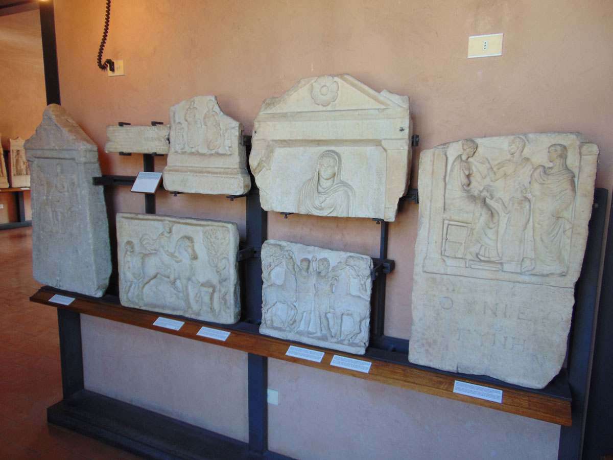 De archeologische stukken komen uit de tijd van de Grieken, Romeinen en Etrusken. Op de eerste verdieping bevindt zich een grote collectie van allerlei Griekse graven. Hierdoor is allerlei informatie verkregen over de manier van leven in deze tijd.